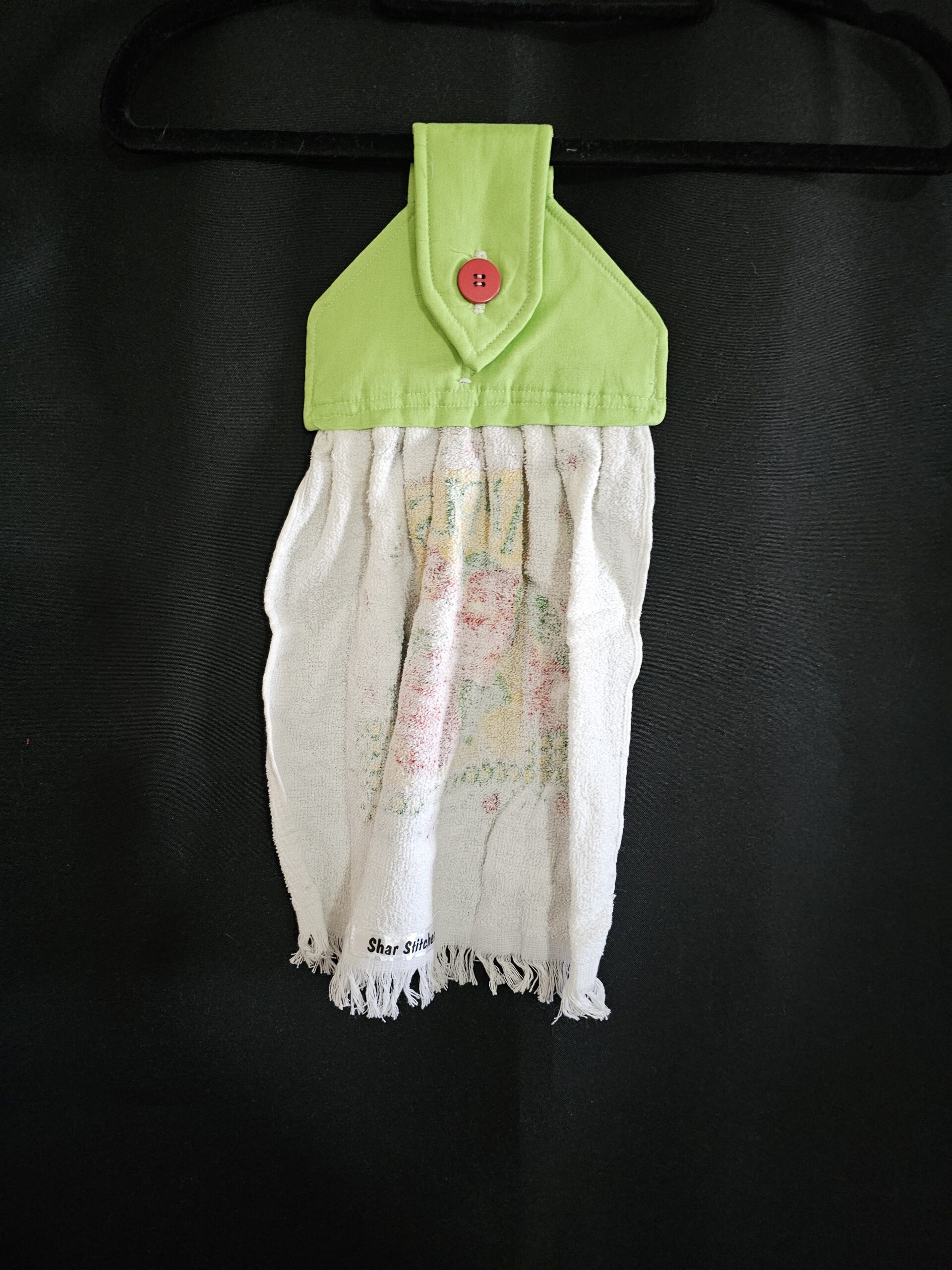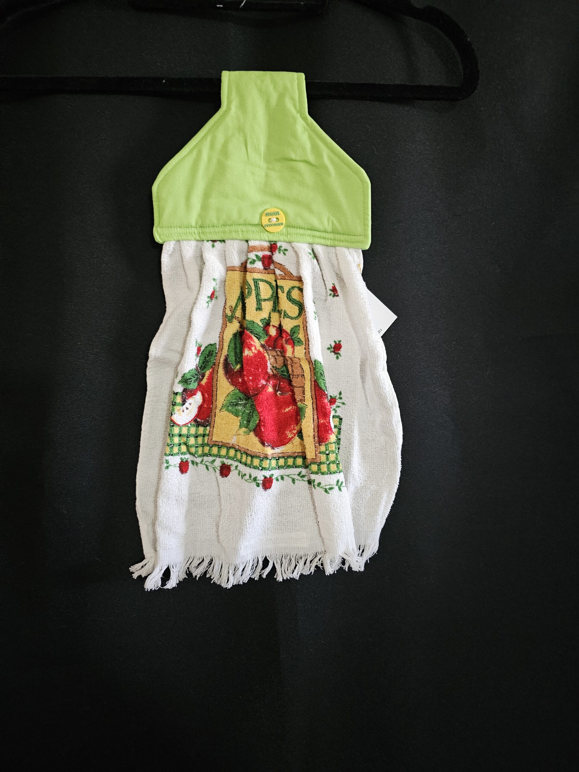 Apple Tea Towel with Green Button Top