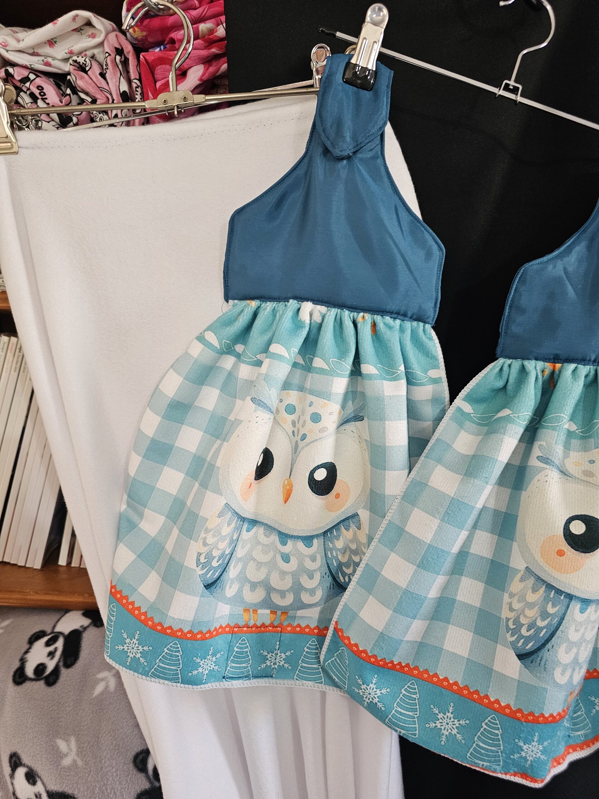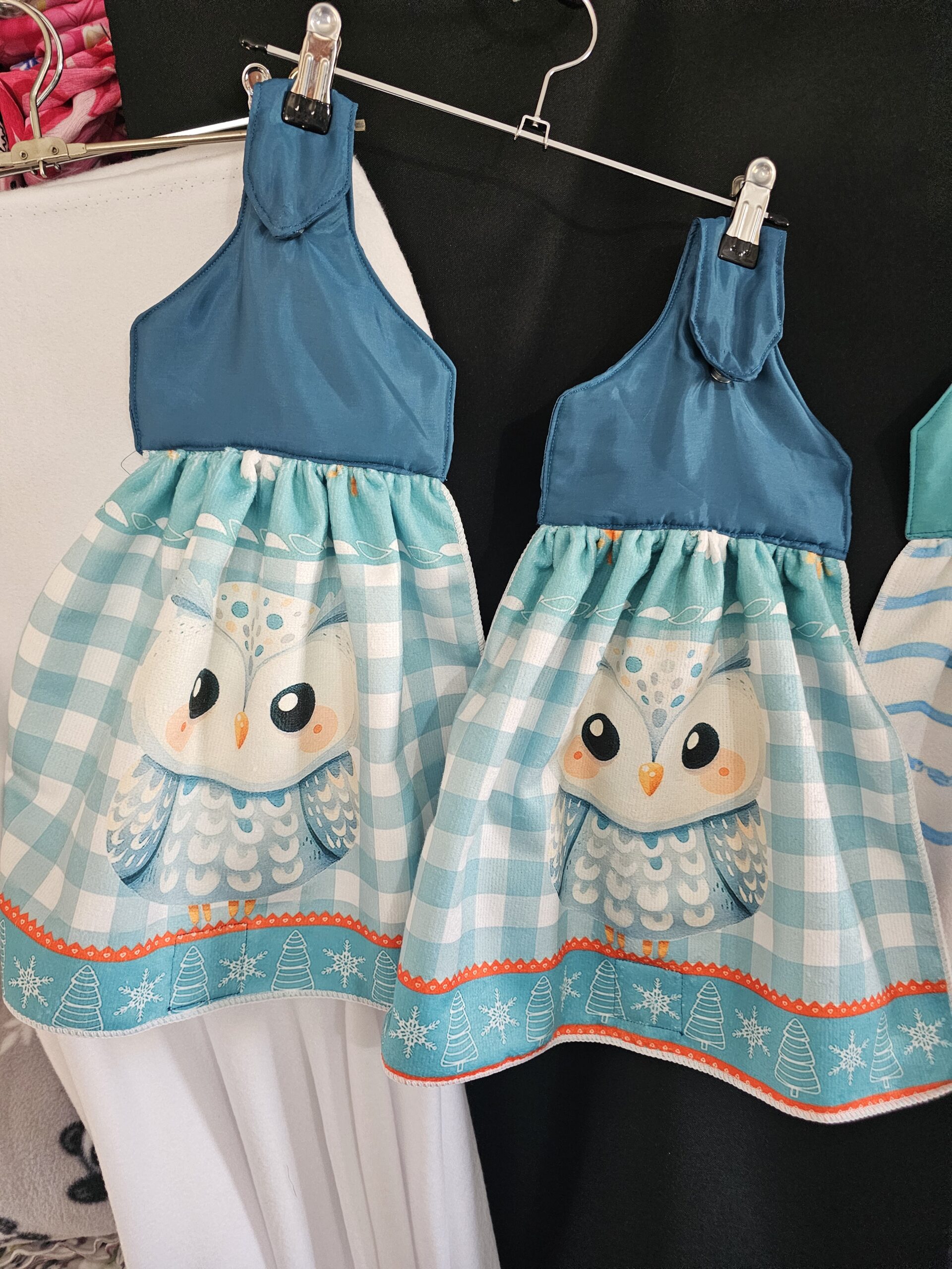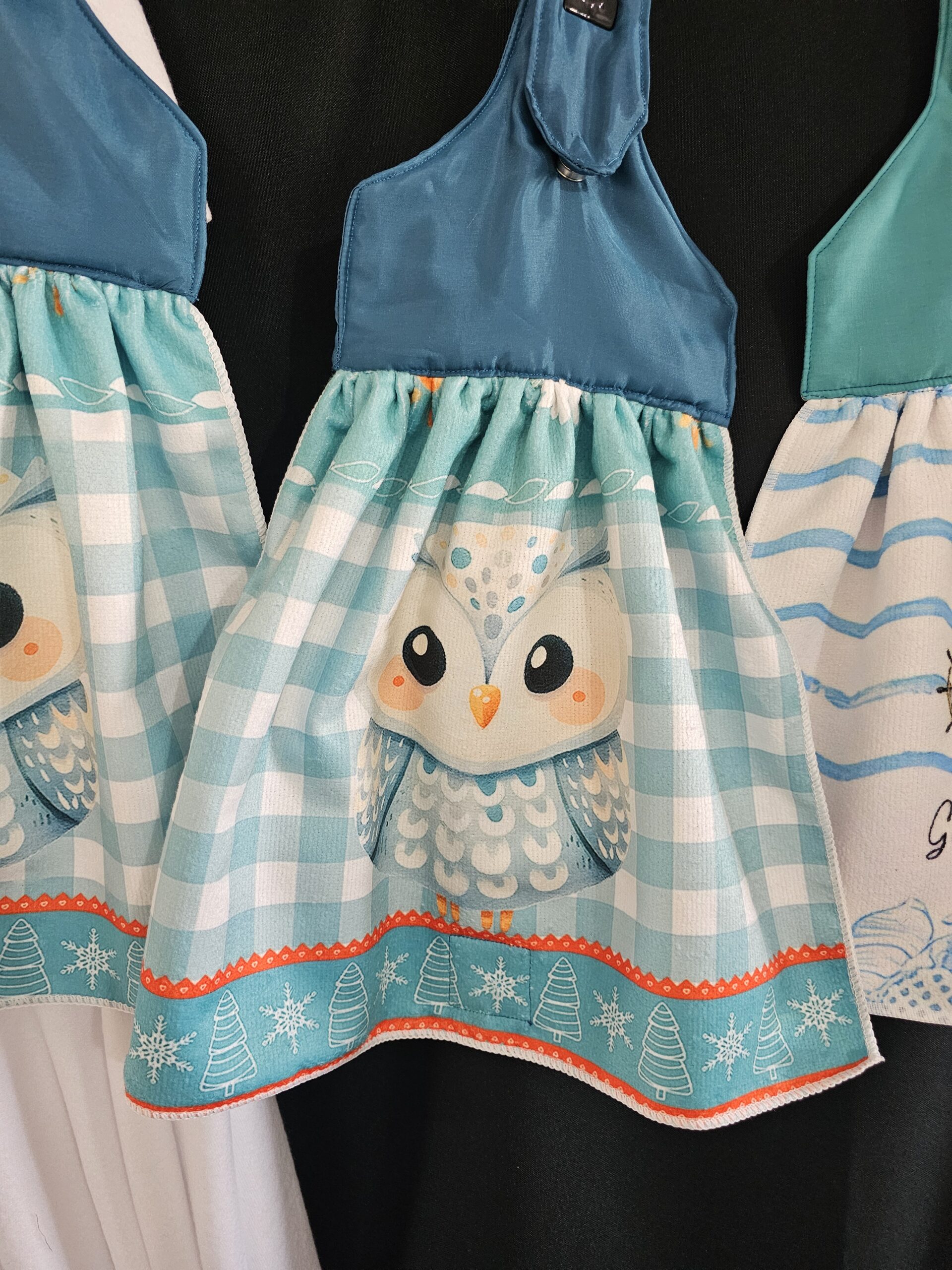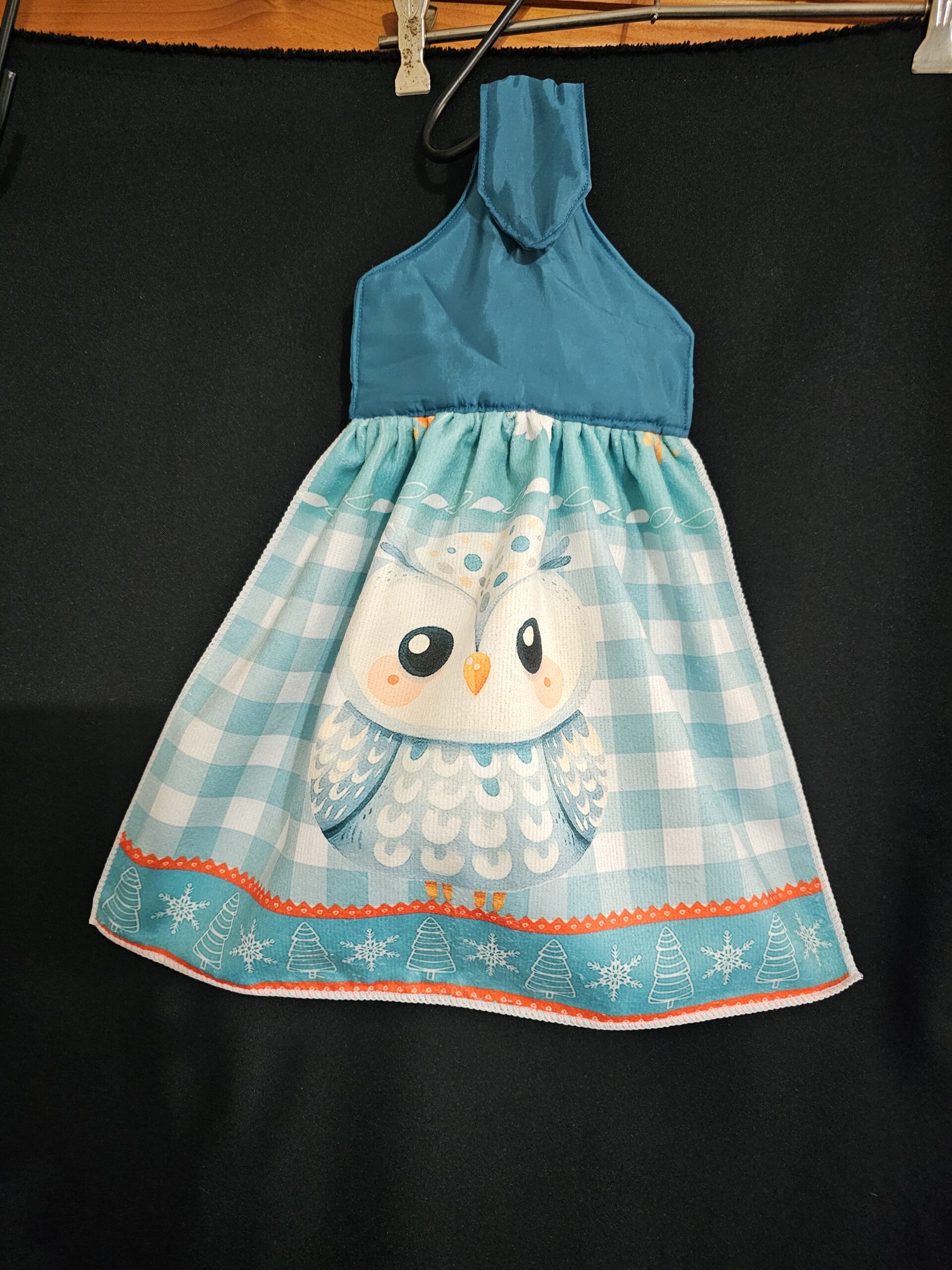 Aqua Top with Owl Single Tea Towel and Magnetic Closure
