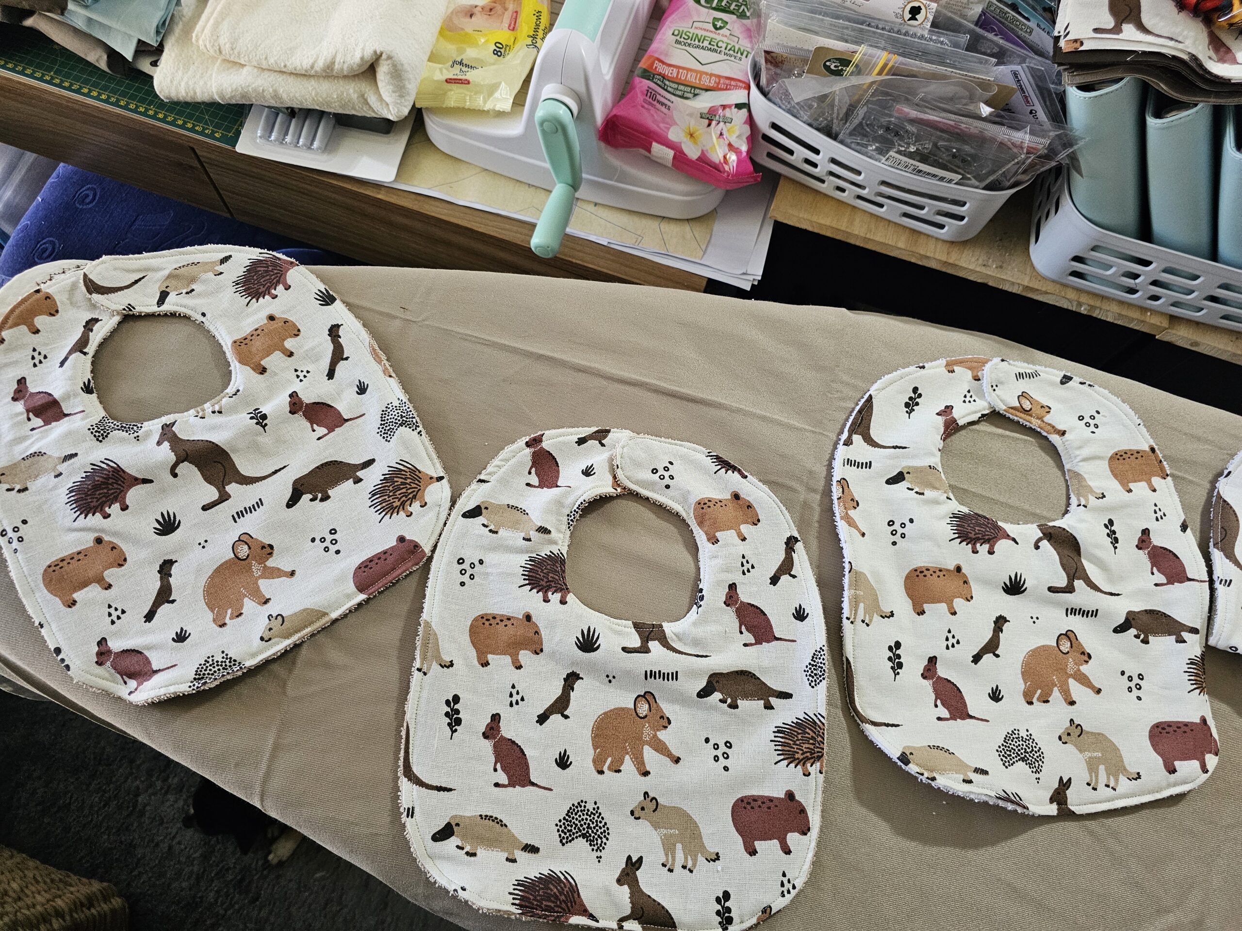 Australian Animals Bib with White Toweling and Magnetic Clip