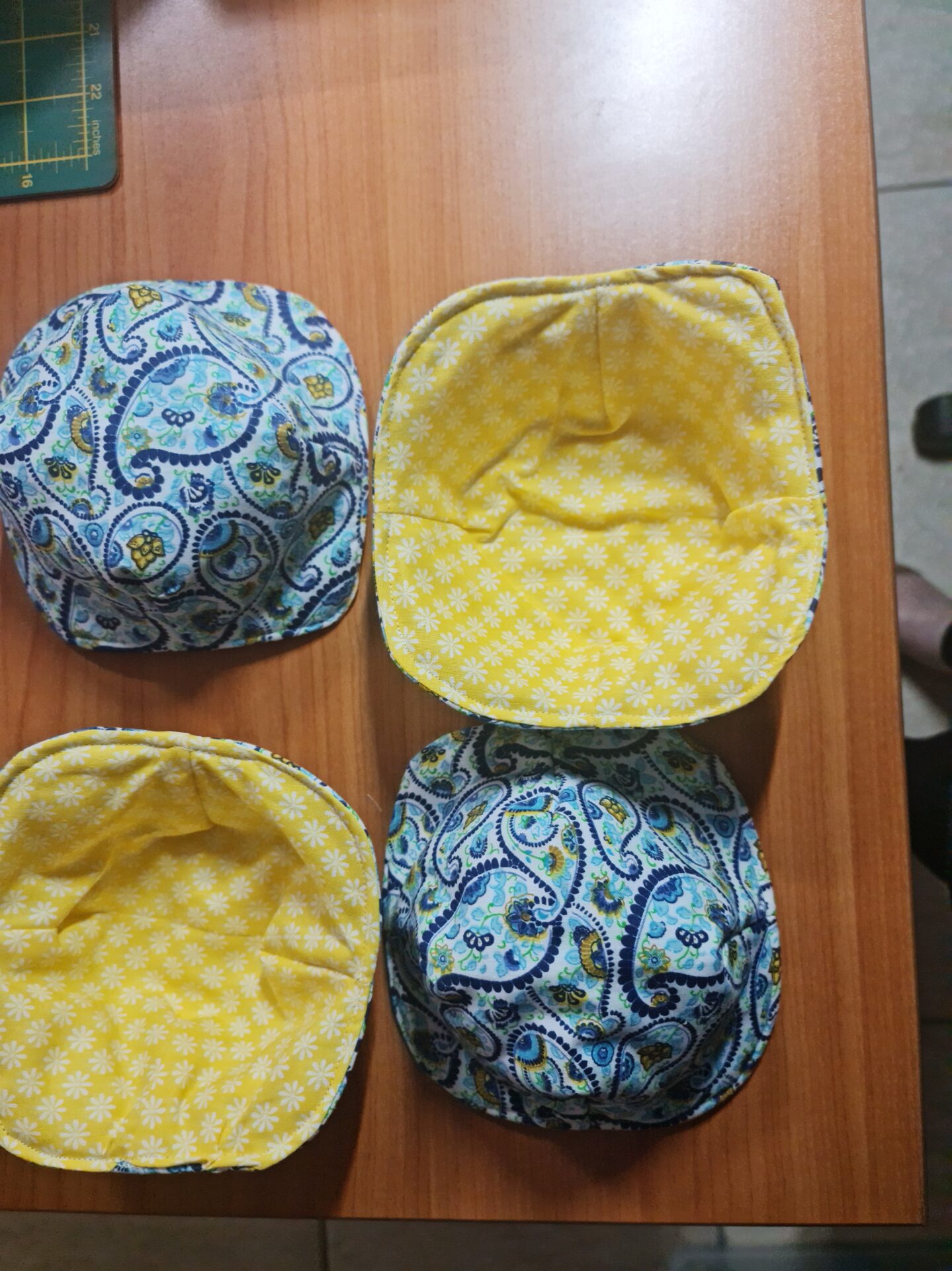 Blue and Yellow Pattern with Yellow and White Flower Pattern – Reversible Bowl Holders – Small