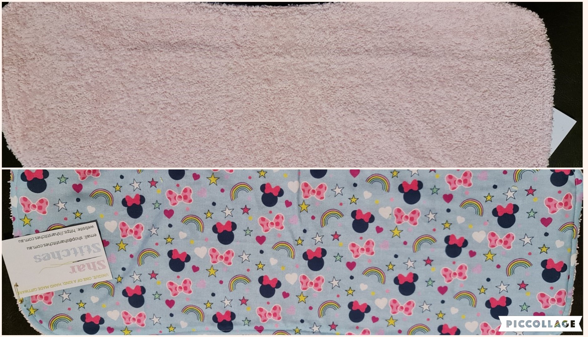 Blue Background Minnie with Pink Toweling Burp Cloth