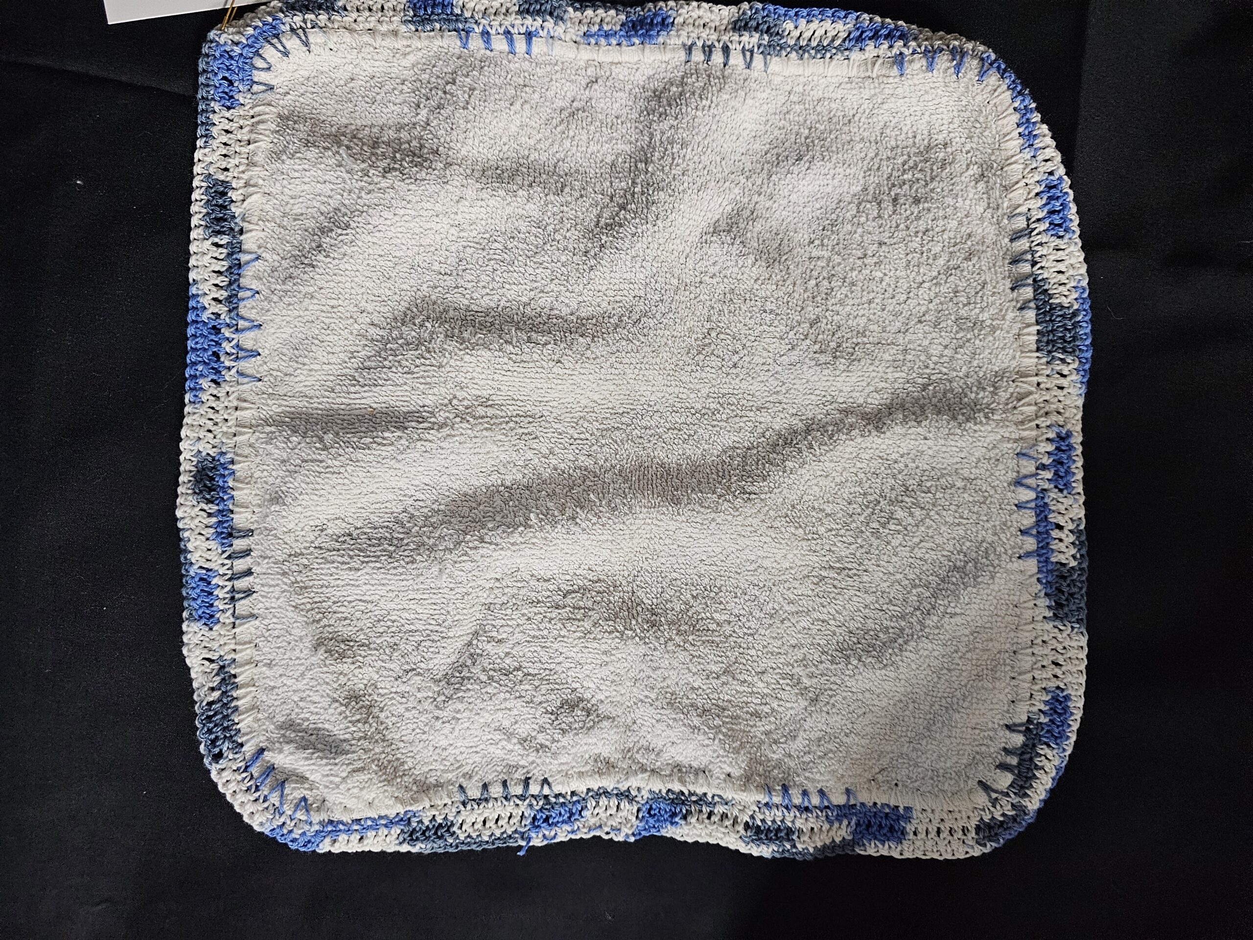 Blue Flower Washer with Varigated Blue Crochet Edge