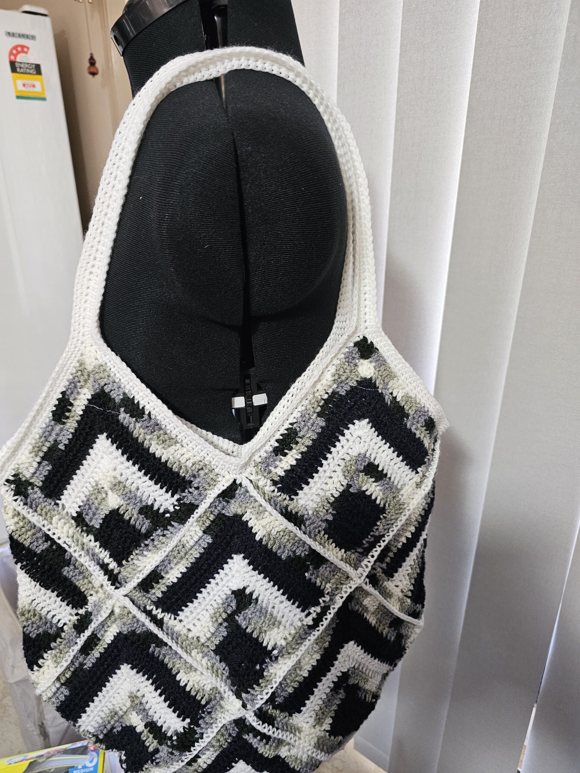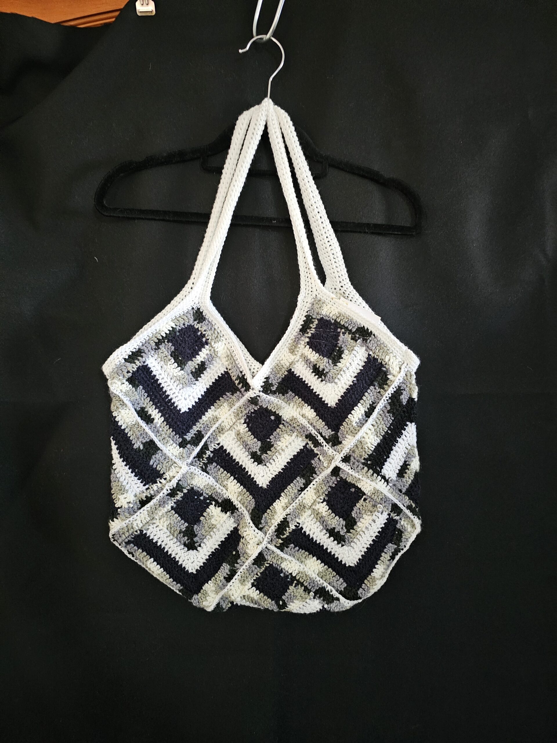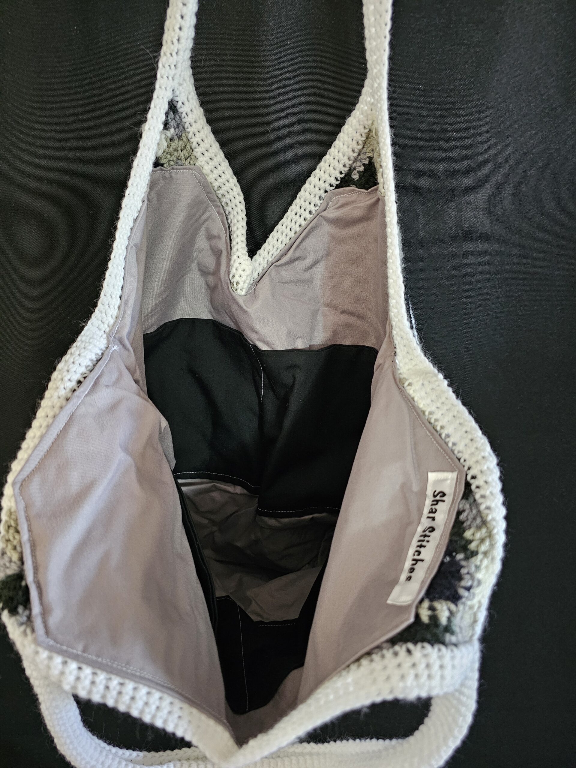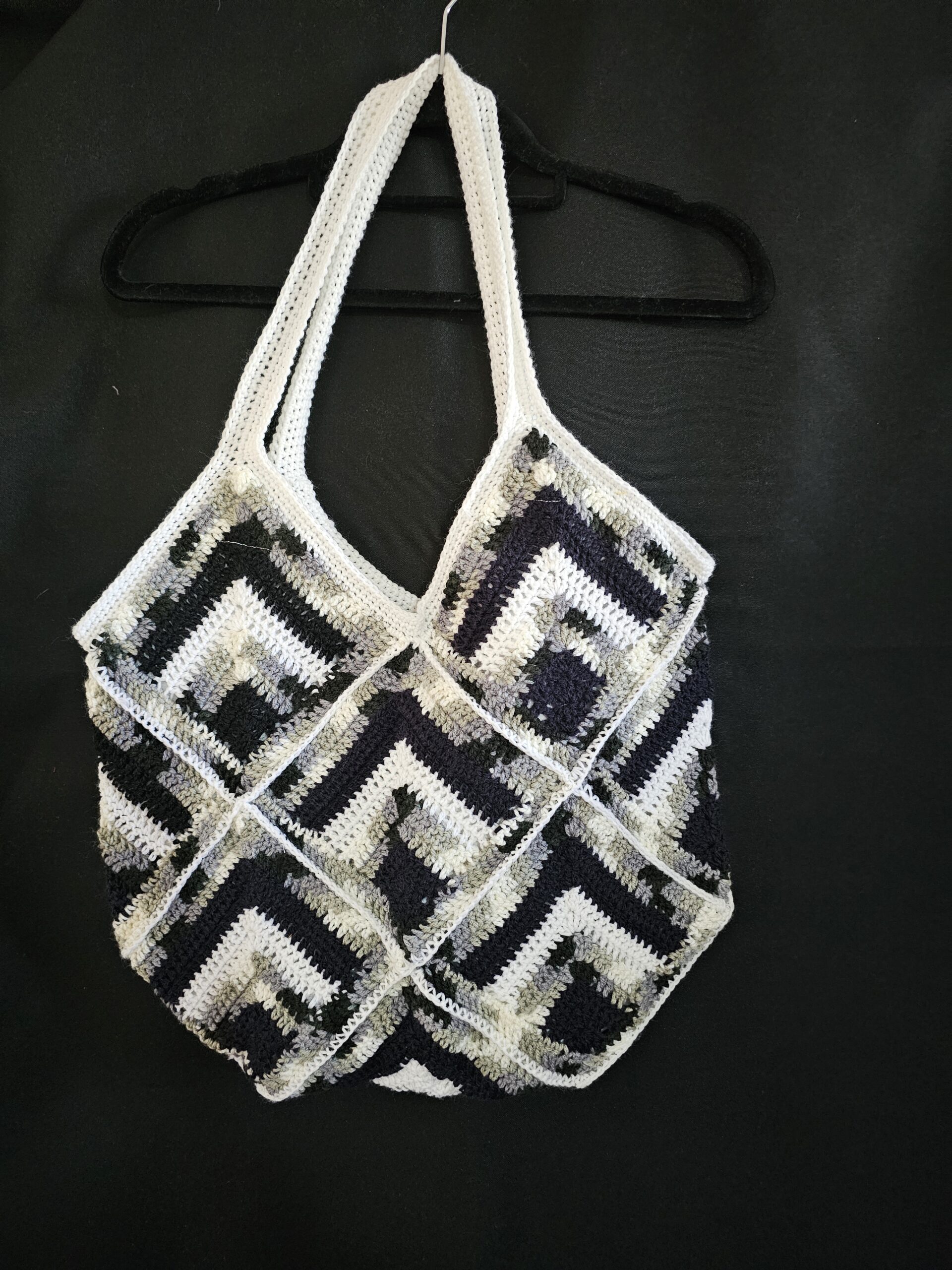Crochet Tote Bag-Multi Colour – Black, White and Grey – Hand Made