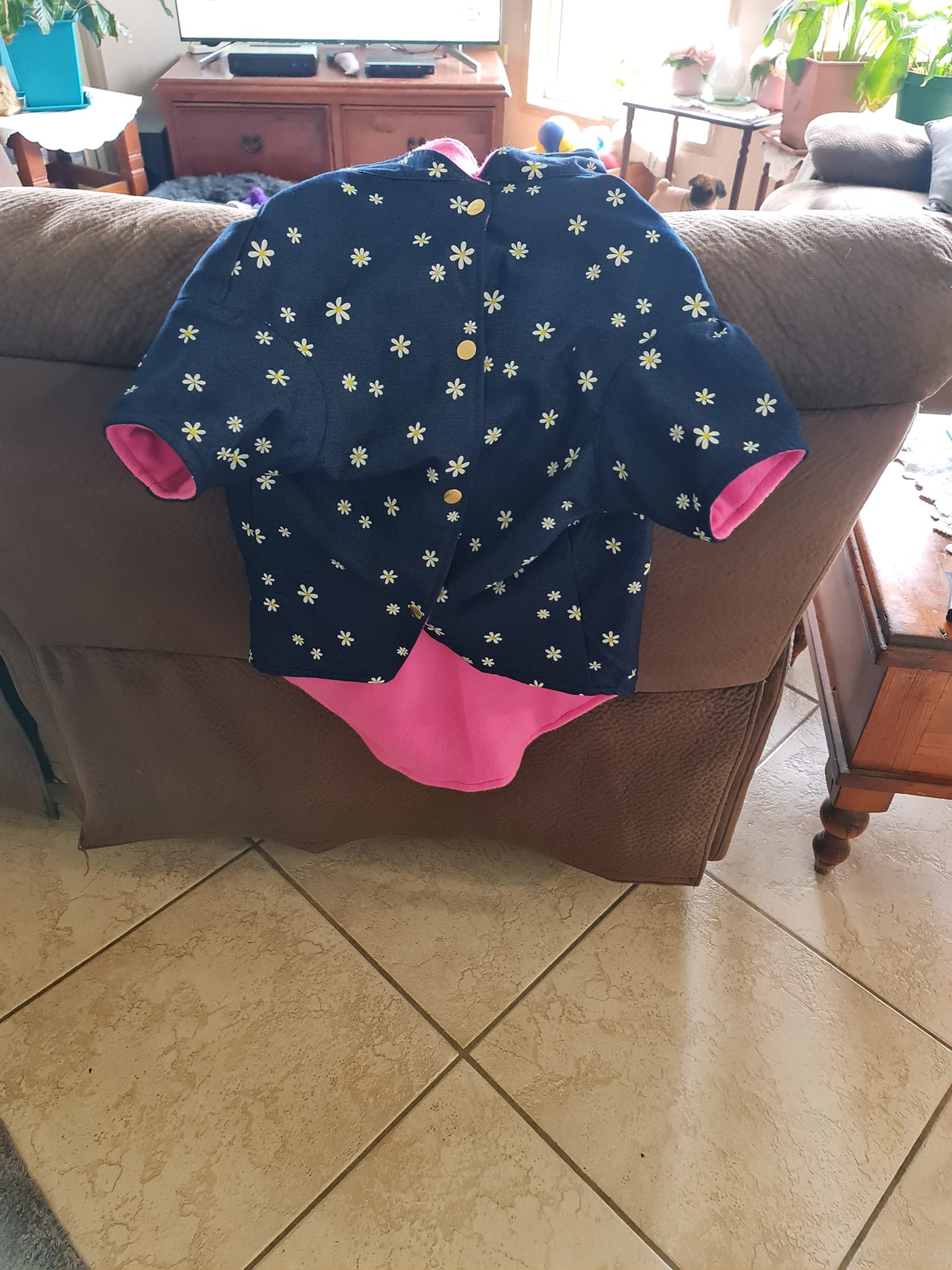 Denim Dog Coat with Daisy – Pink Fleece Lining