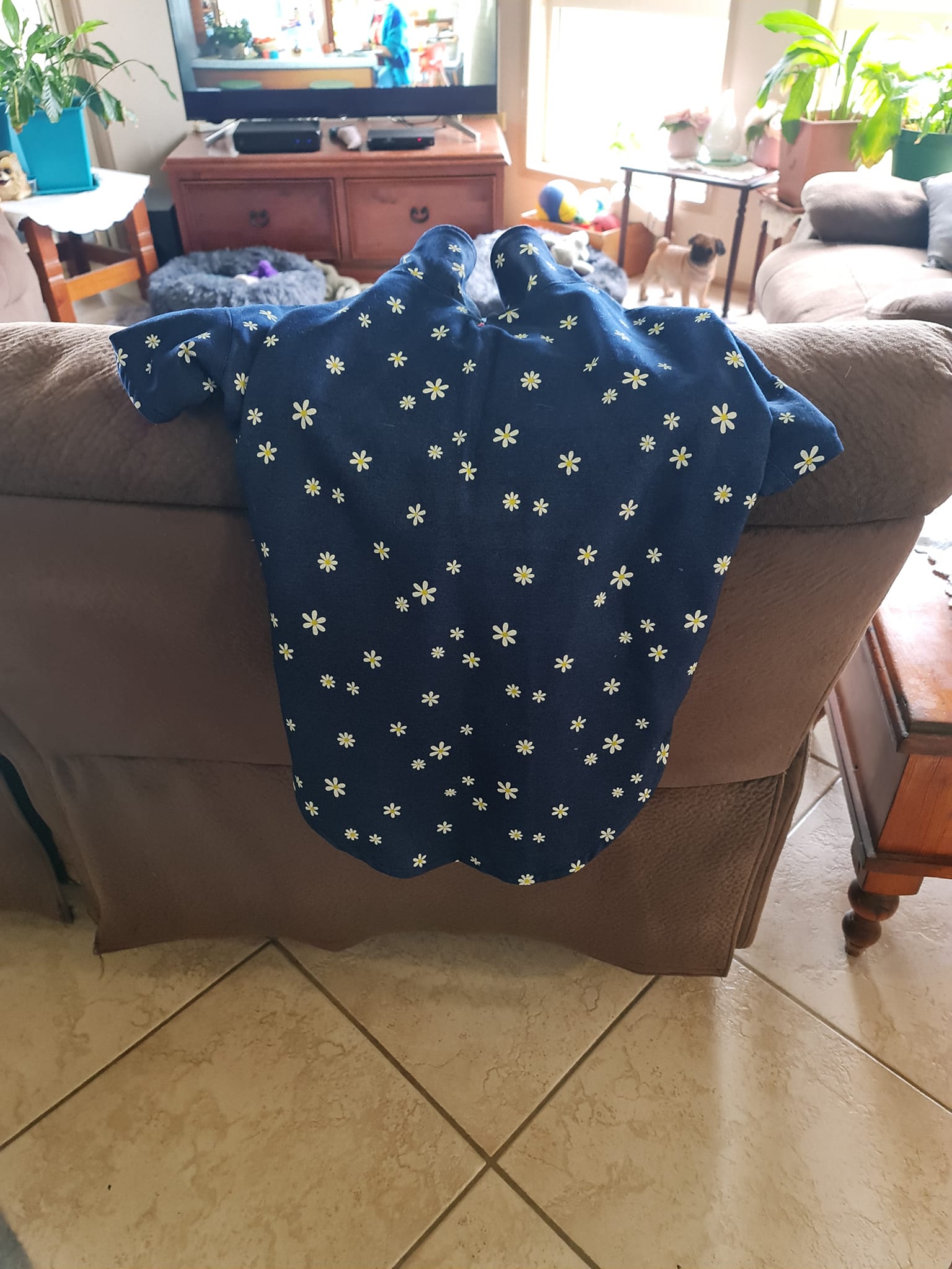 Denim Dog Coat with Cotton Lining would suit oversize dog – 60 cm from back of neck to tail – 80 cm girth.