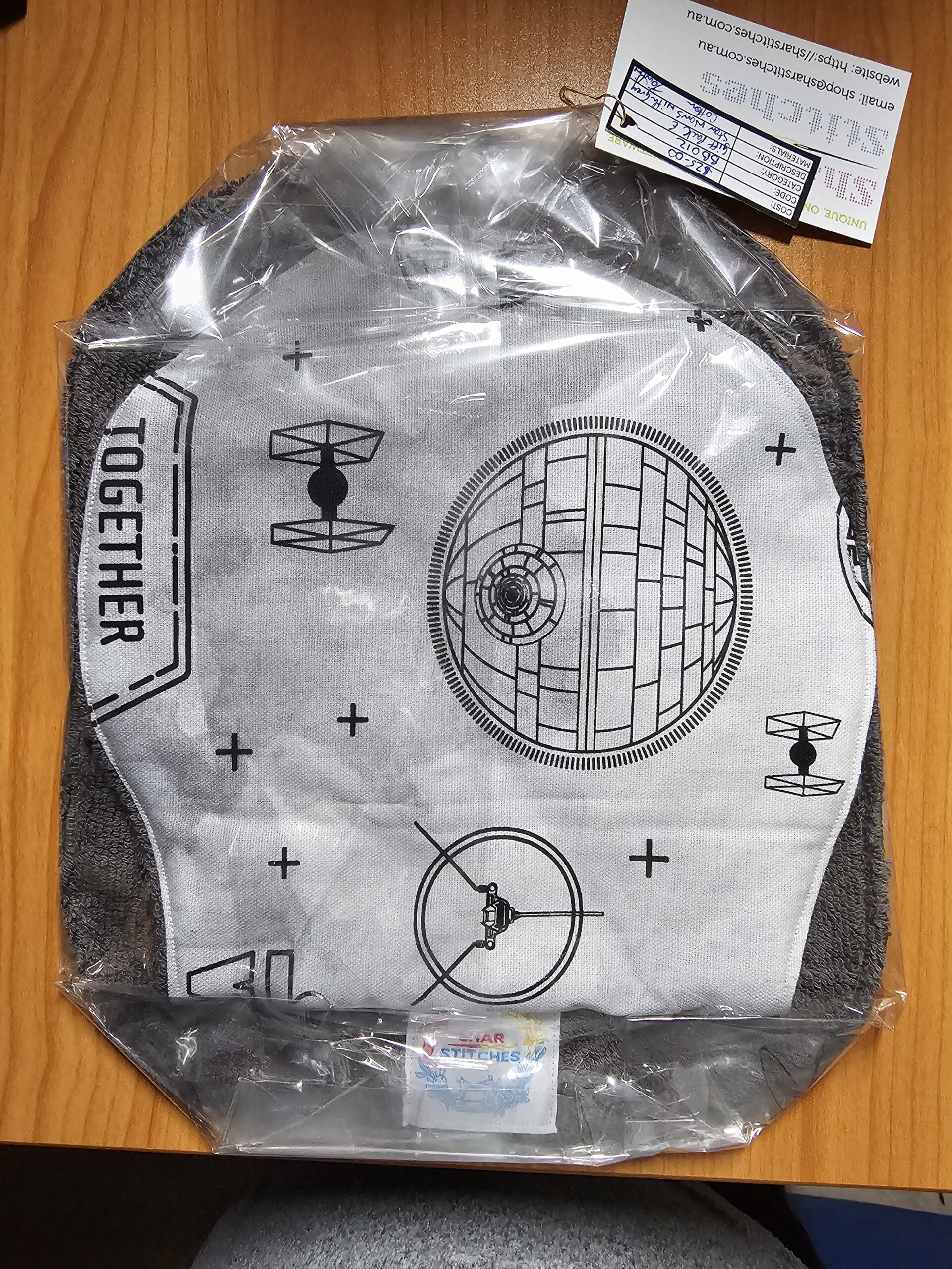 Grey Star Wars Matching Burp Cloth and Bib Set with Magnetic Clip