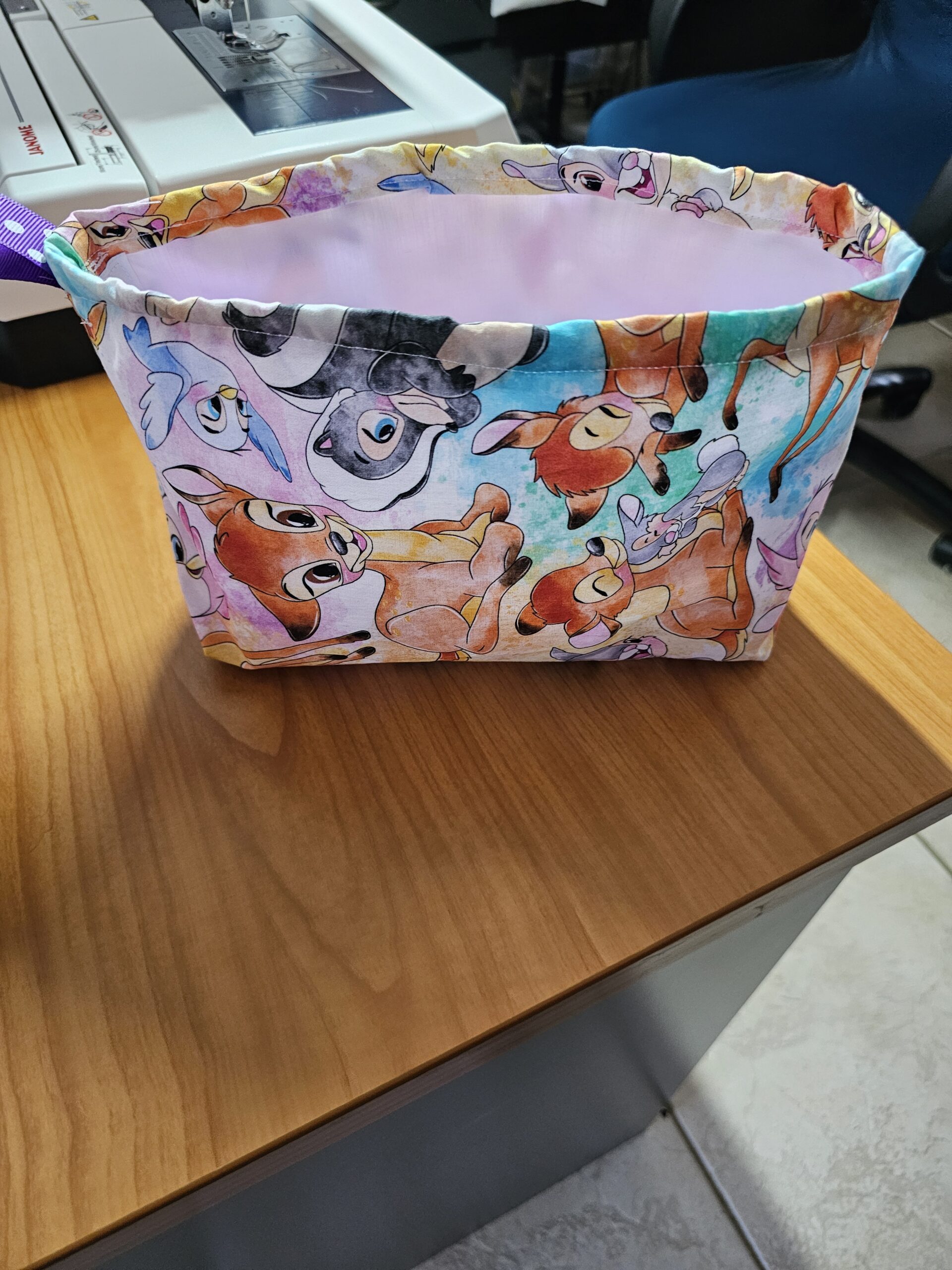 Small Bambi Fabric Basket with Lilac Lining and Clips