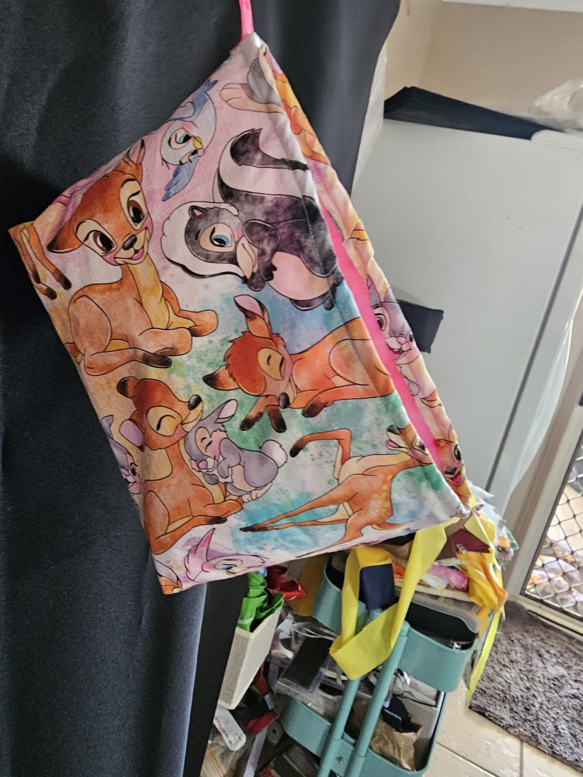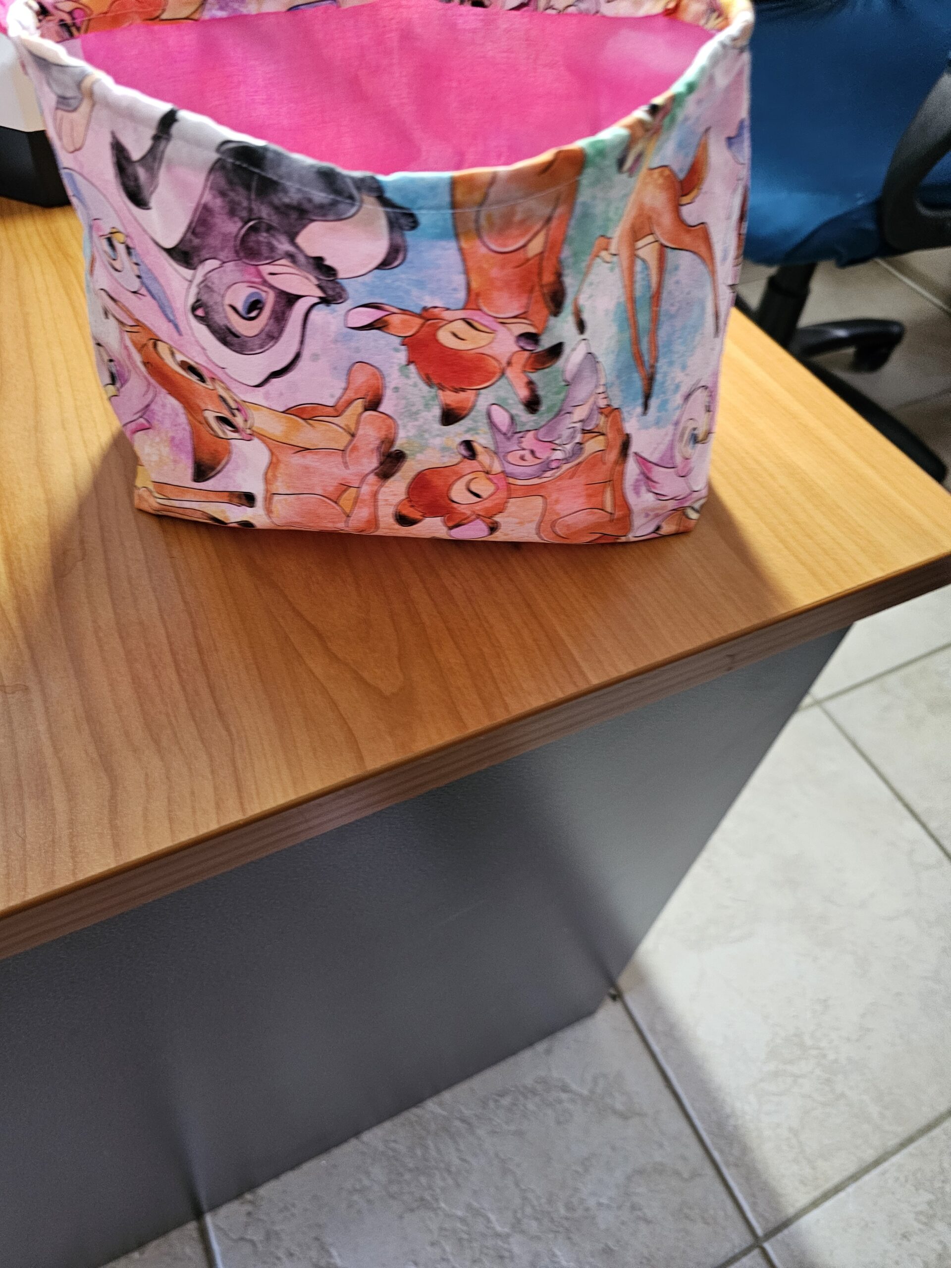 Small Bambi Fabric Basket with Pink Lining and Clips