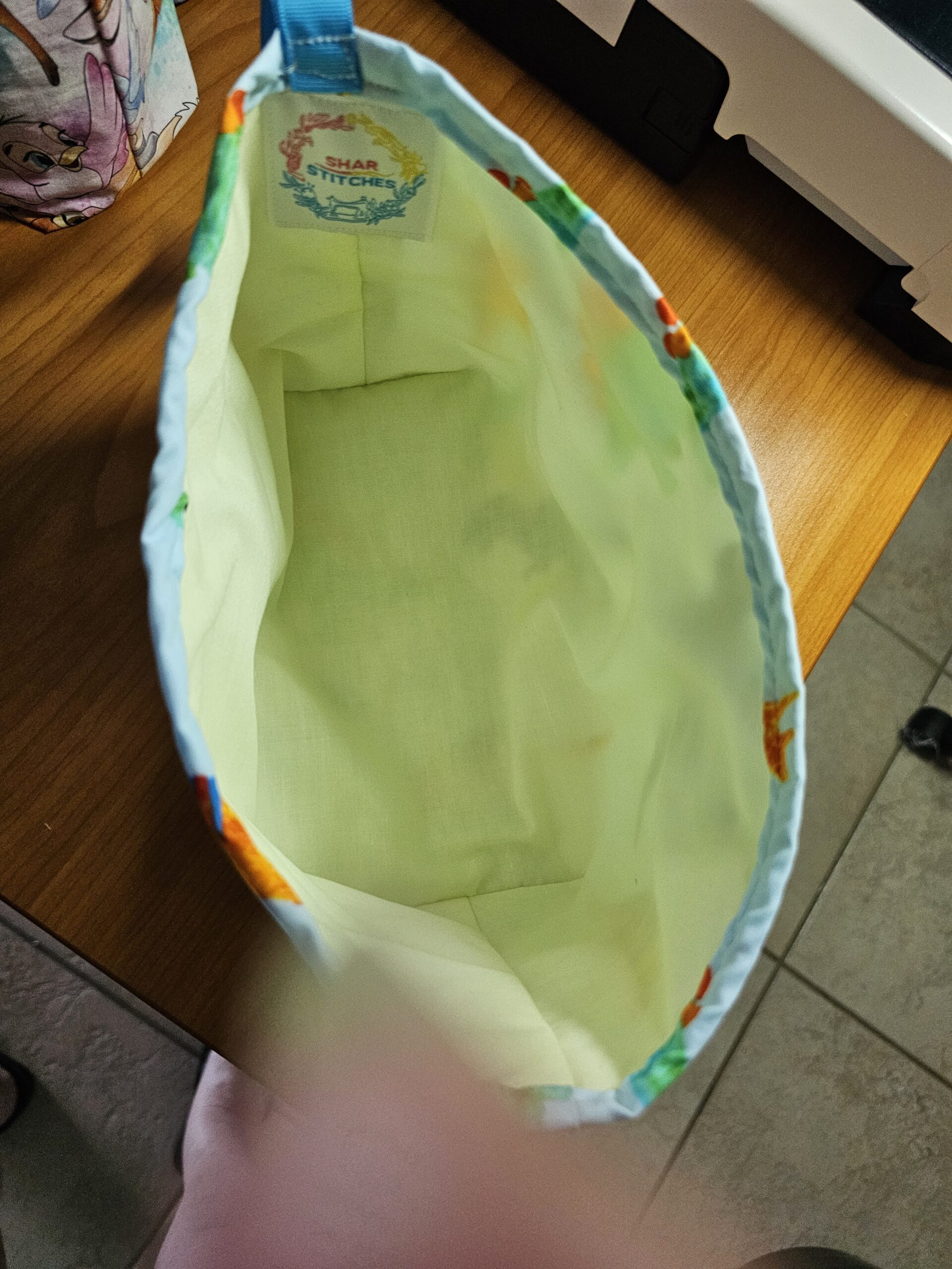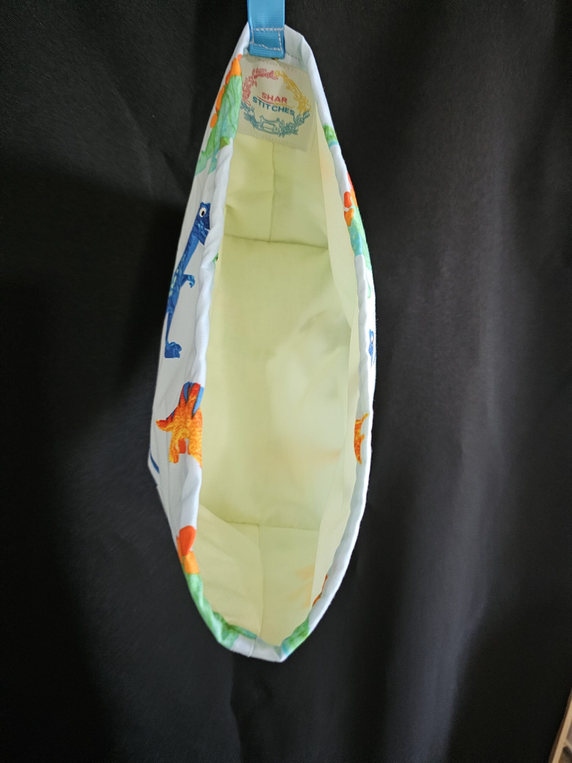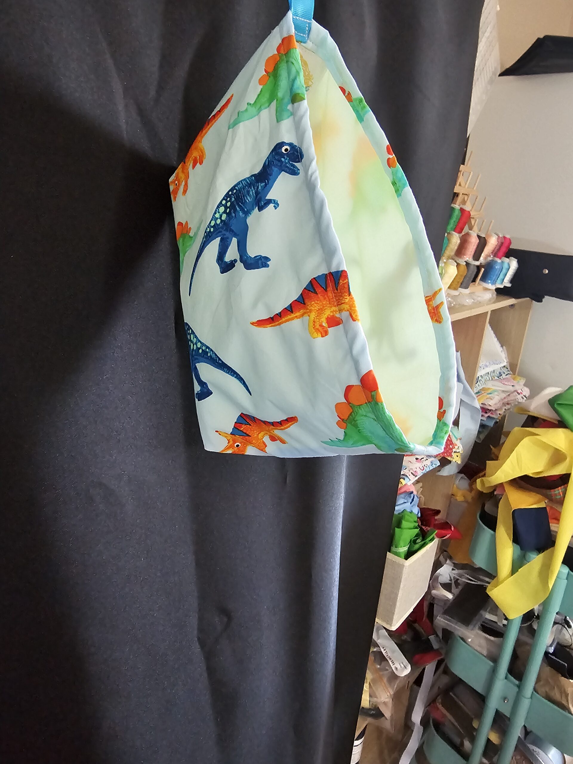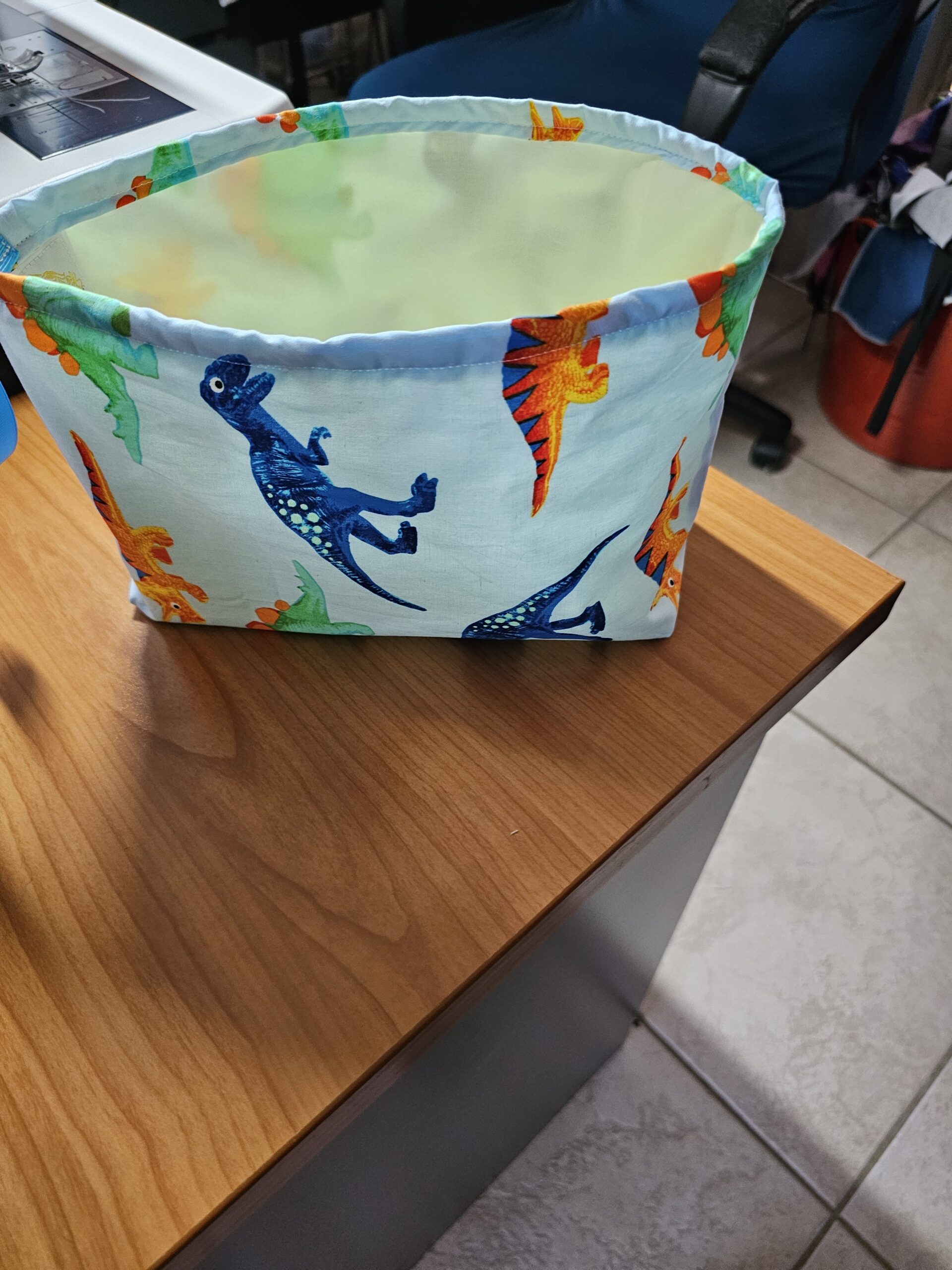 Small Dinosaur Fabric Basket with Yellow Lining and Clips