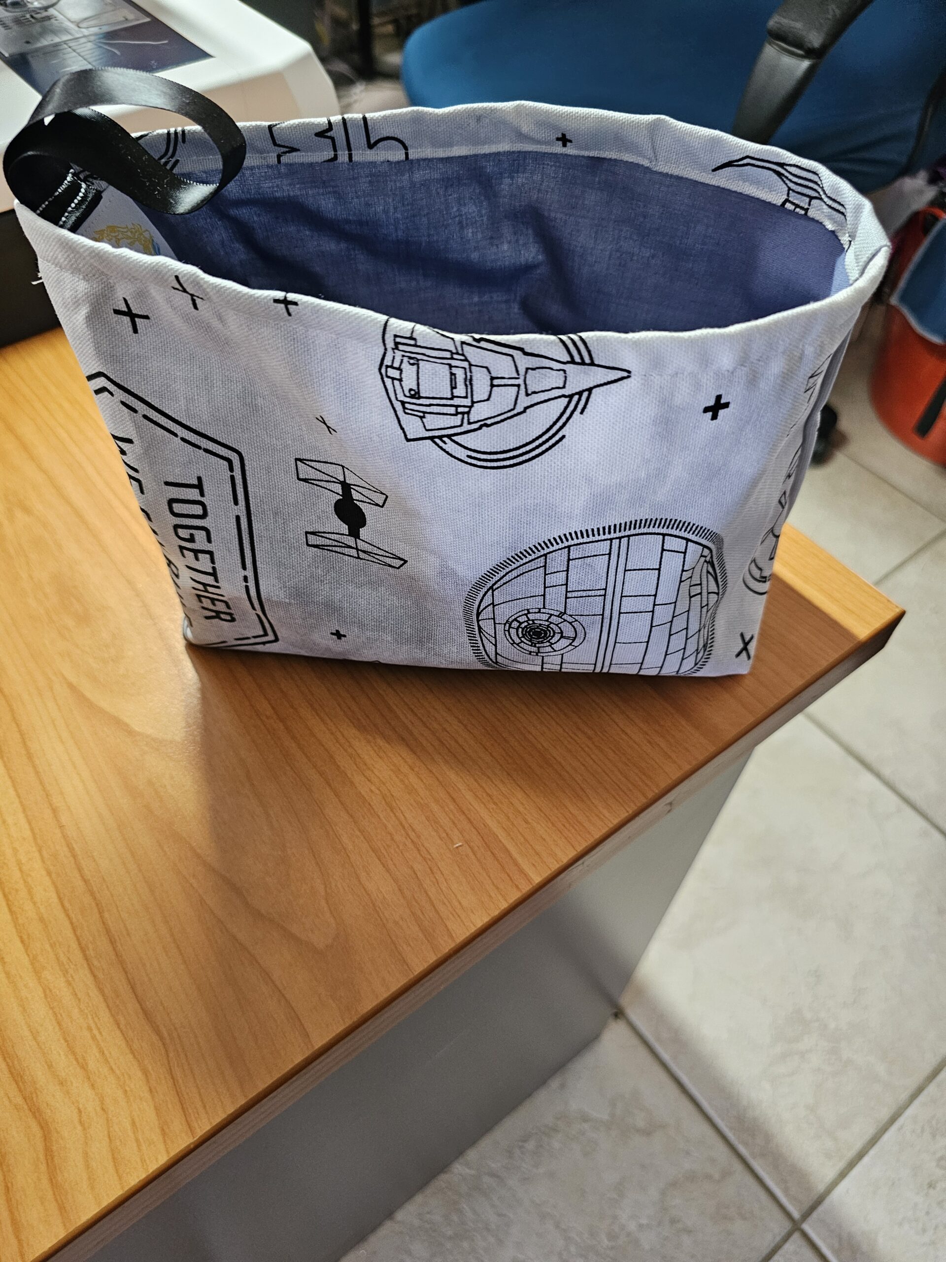 Small Star Wars Fabric Basket with Blue Lining and Clips
