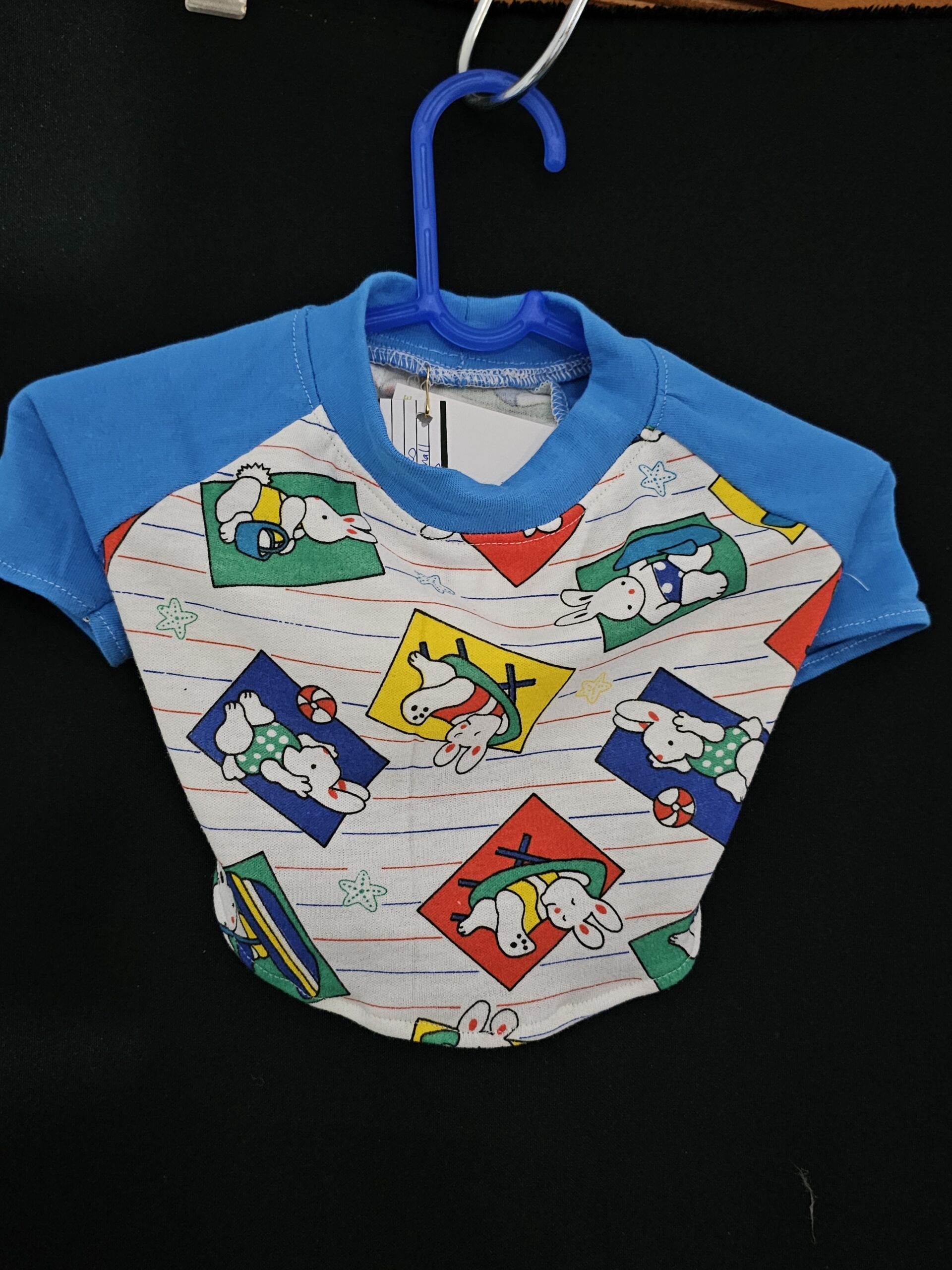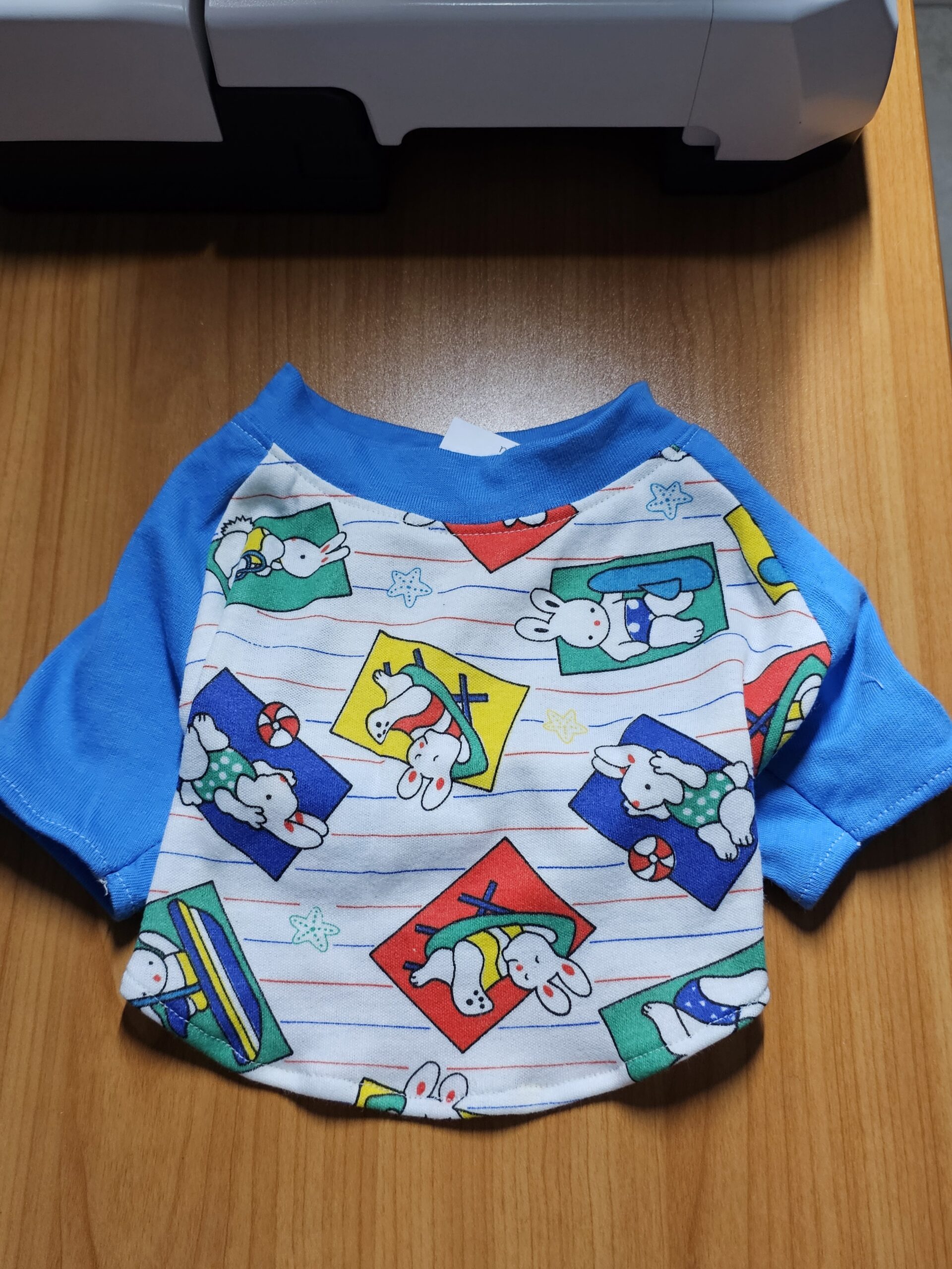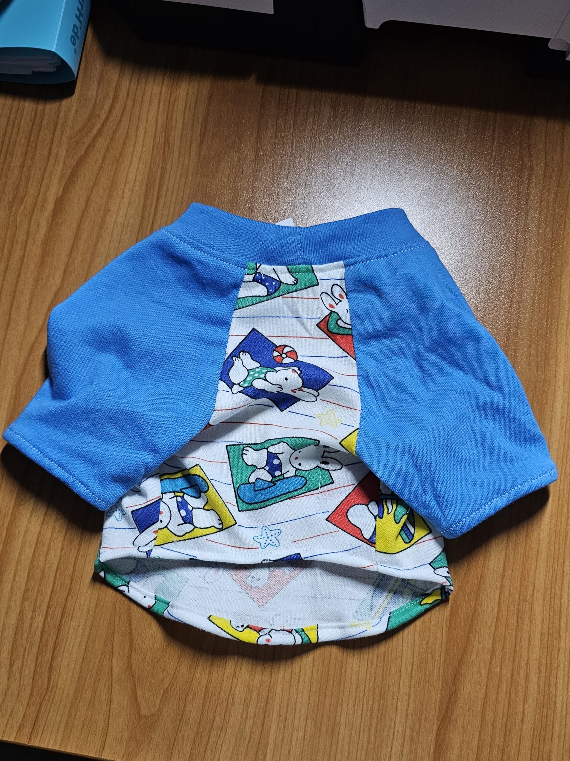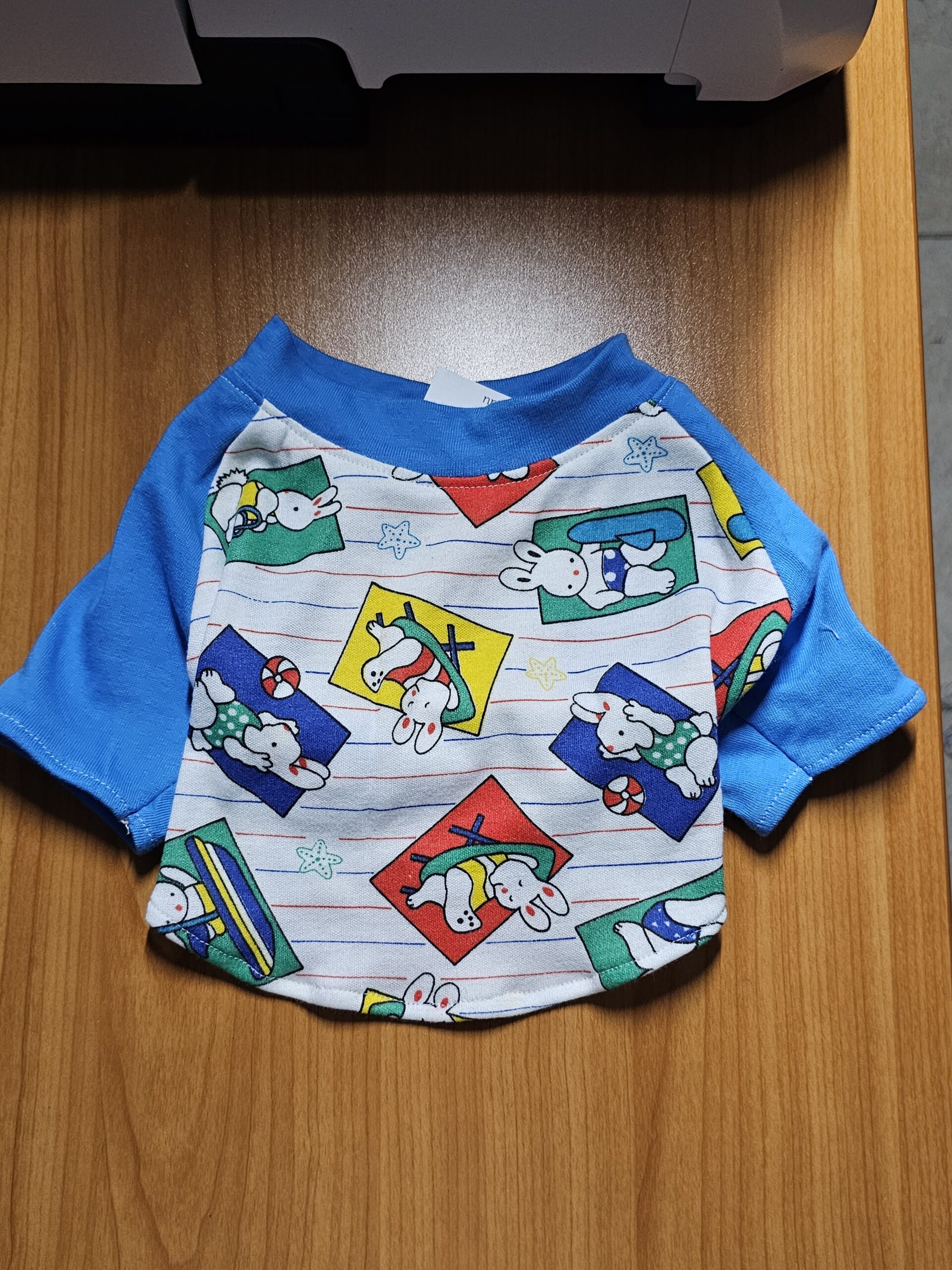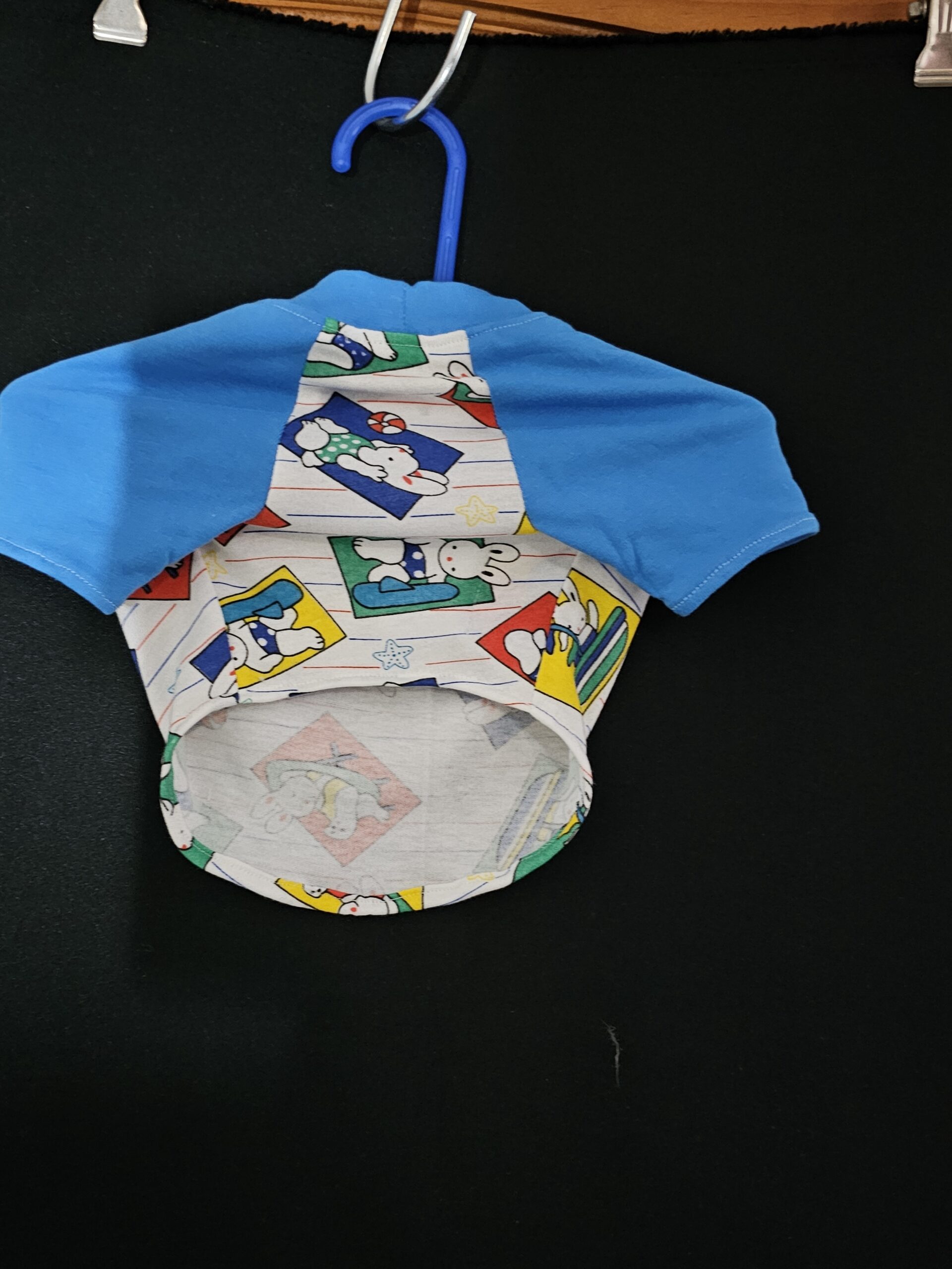 T- Shirt Extra Small Dog Coat with Rabbits and Blue Sleeves