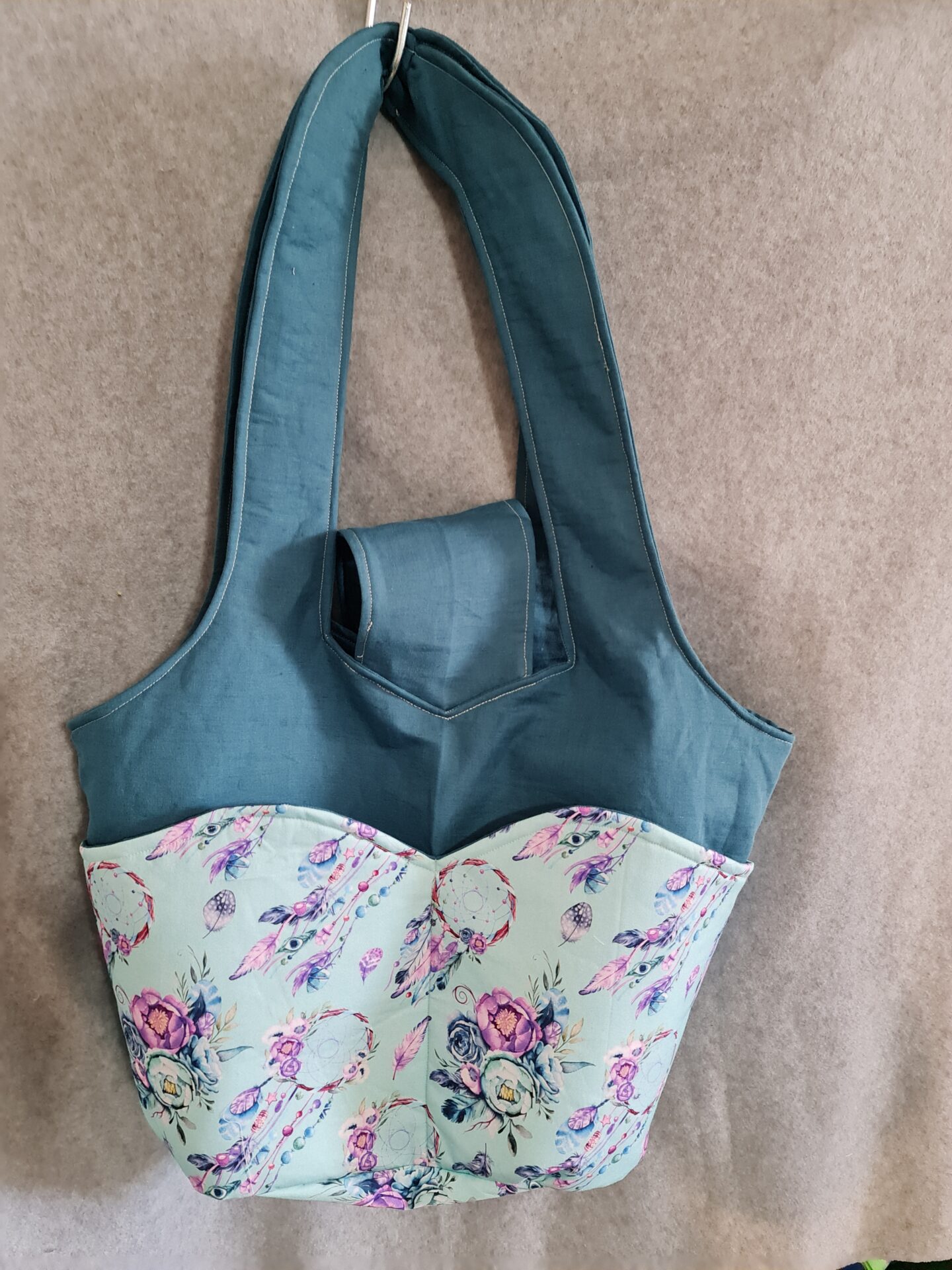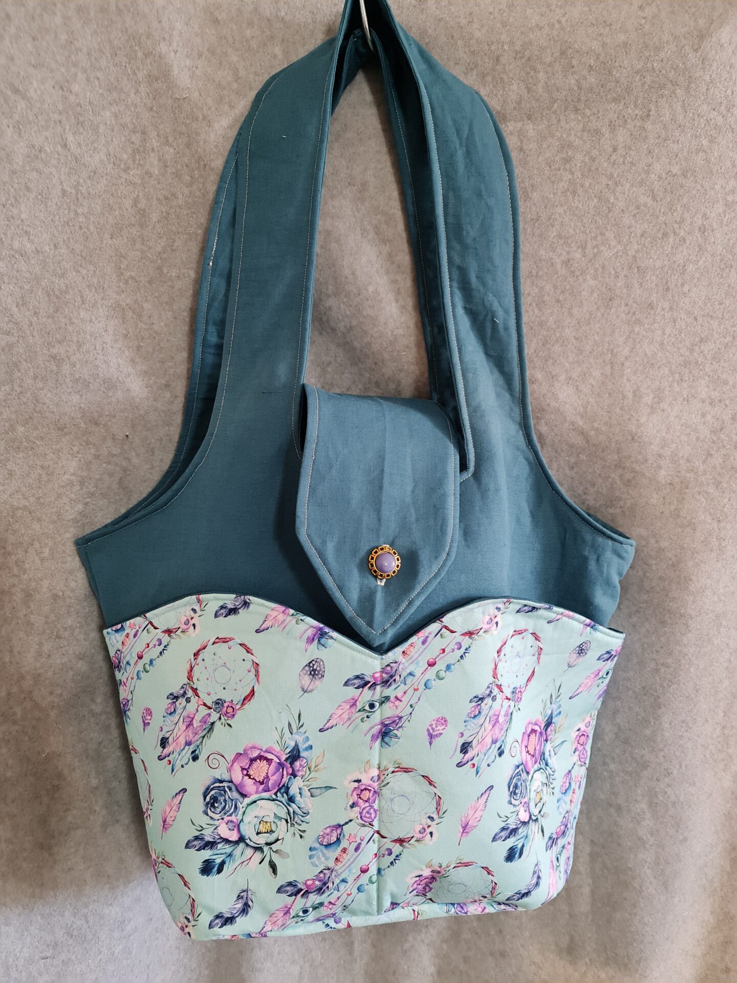 Teal & Aqua Floral & Dream Catchers Large Bag – 8 Pockets