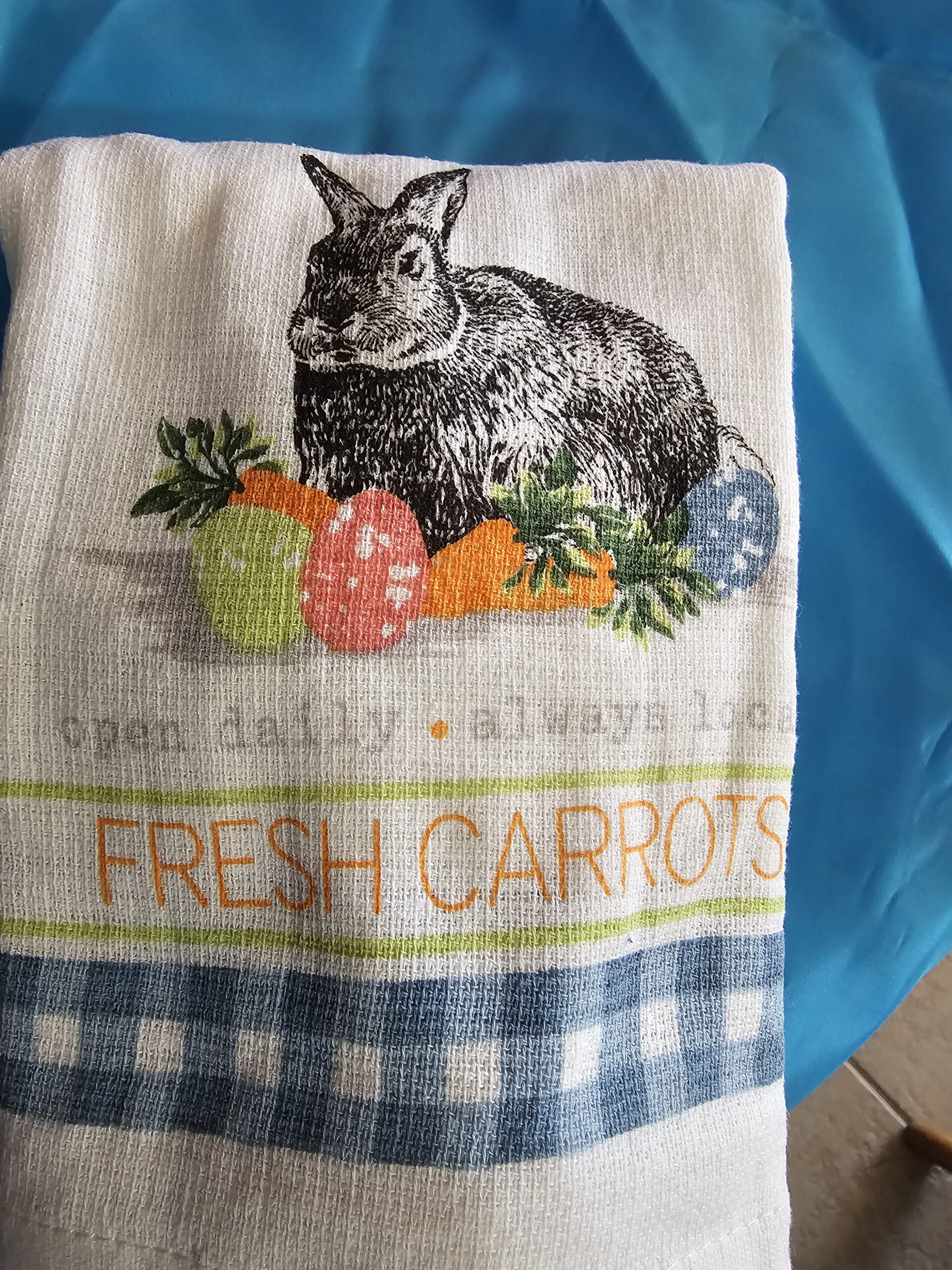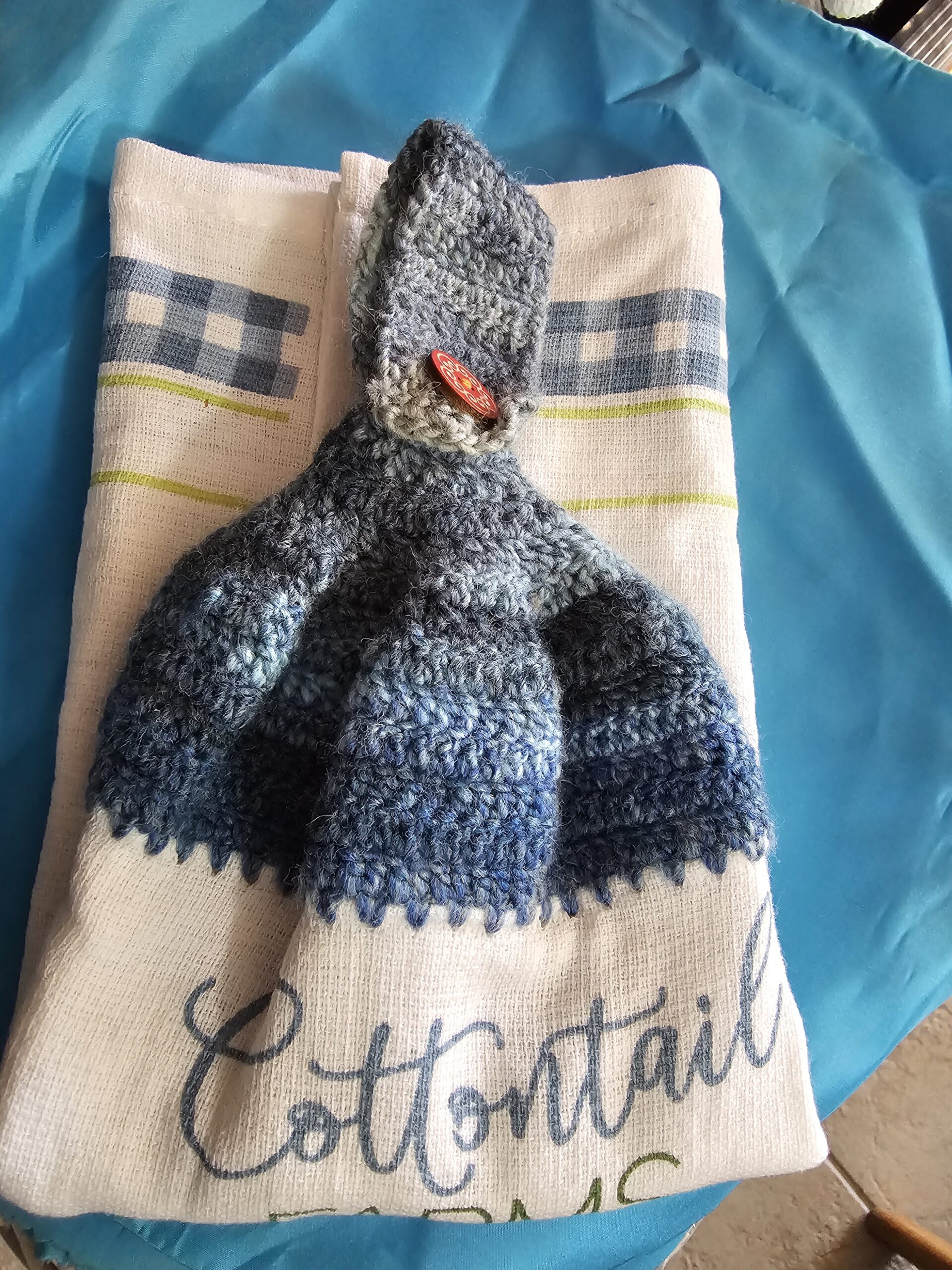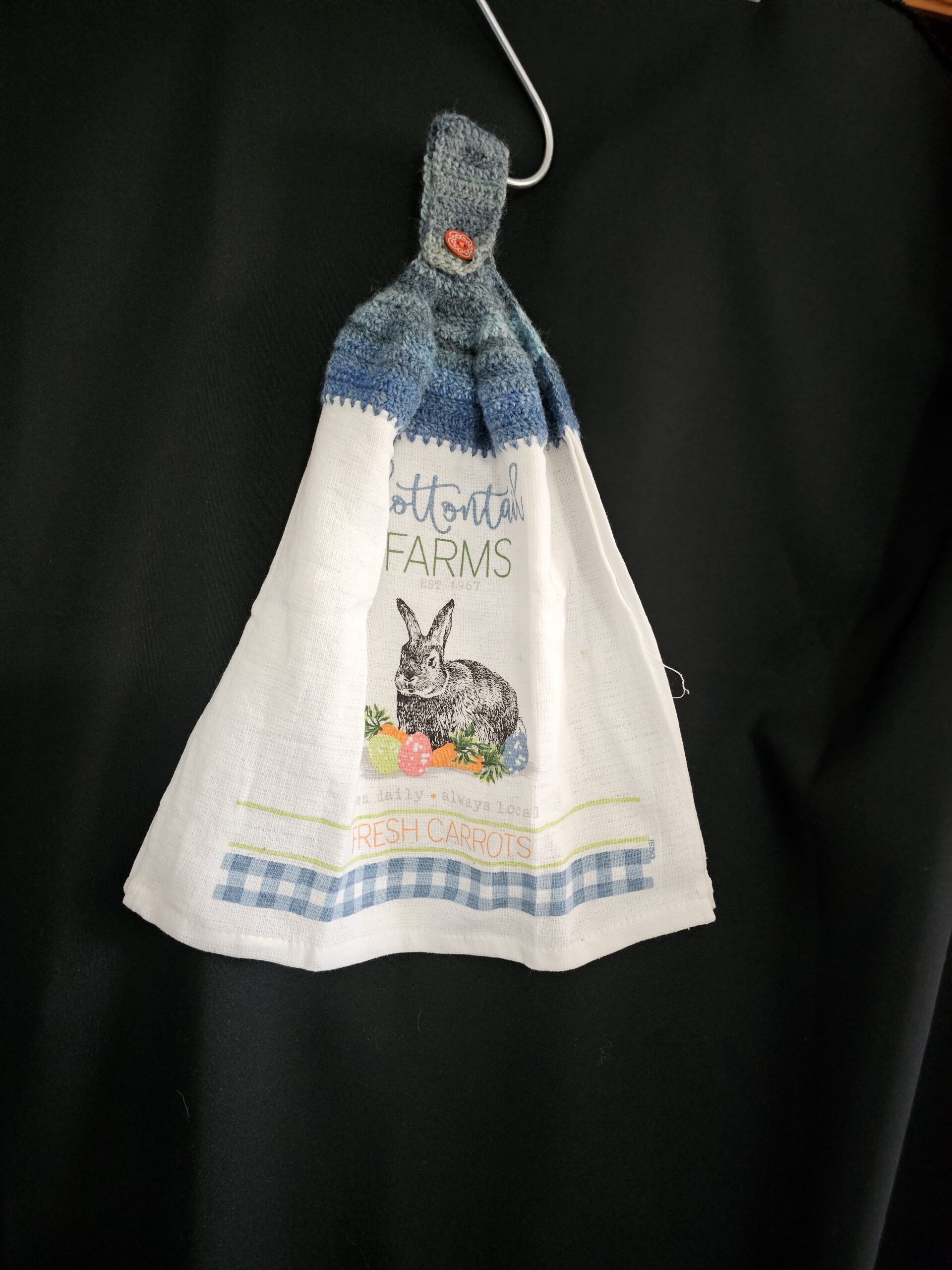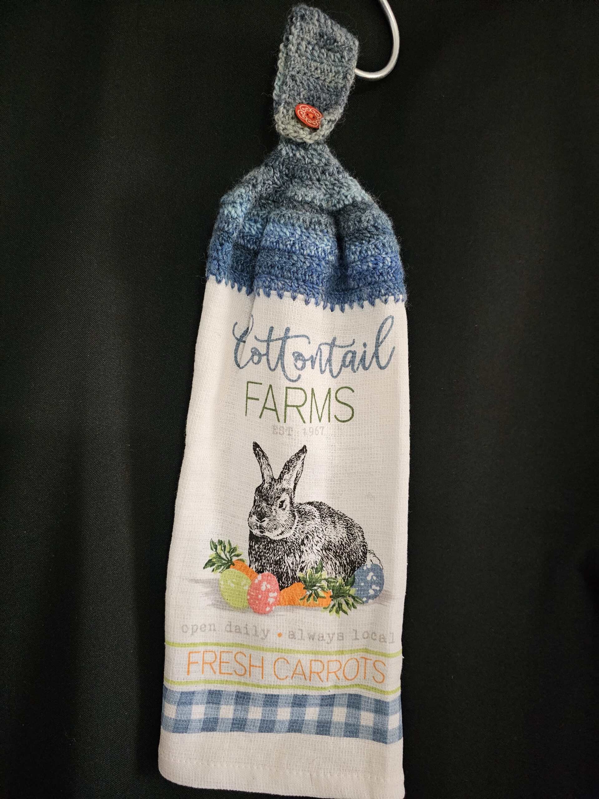 Varigated Blue Crochet Top with Rabbit – Cottontail Farms – Double Tea Towel and Round Button
