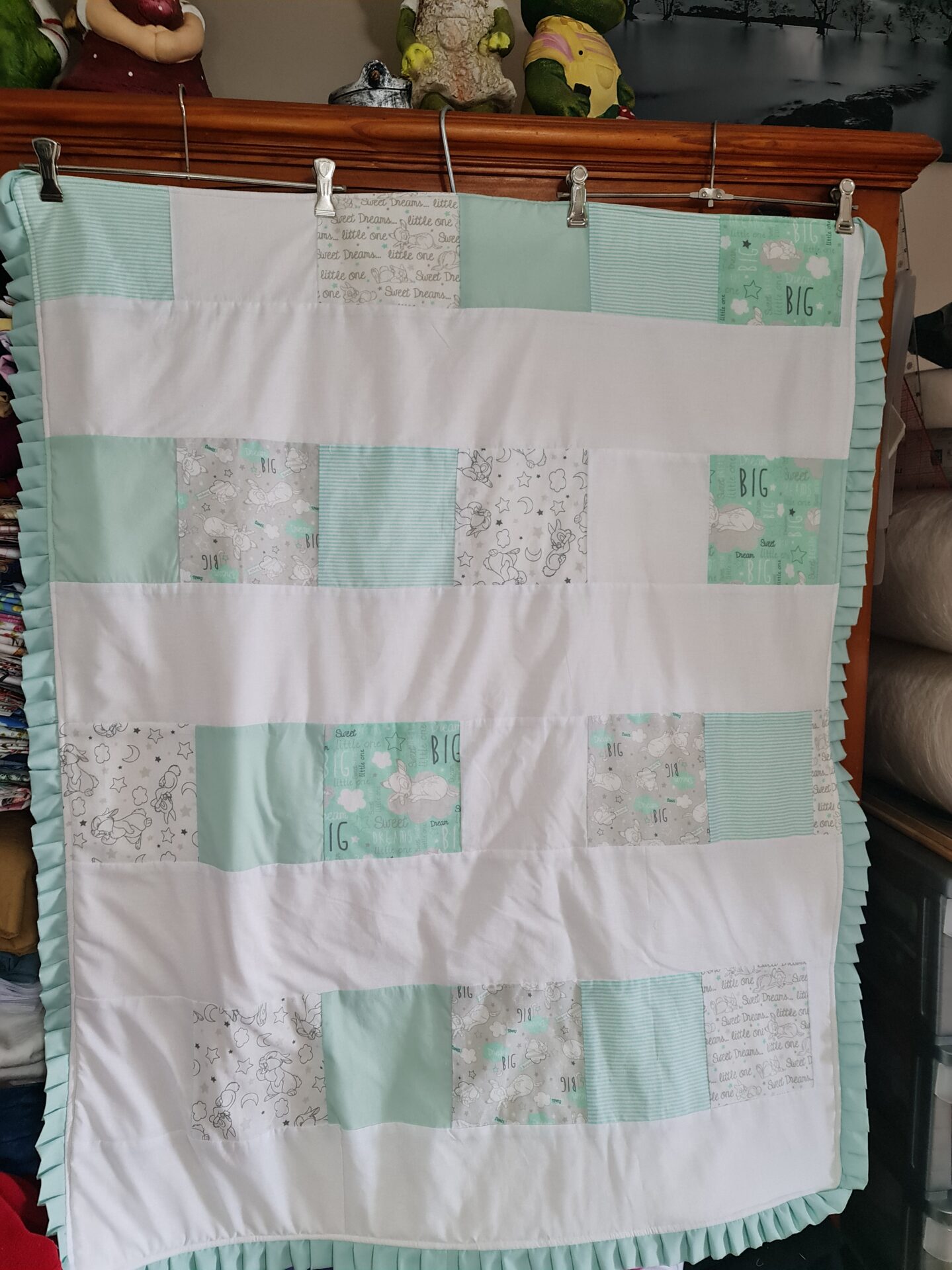White and Mint Green Bambi and Thumper Cot Doona