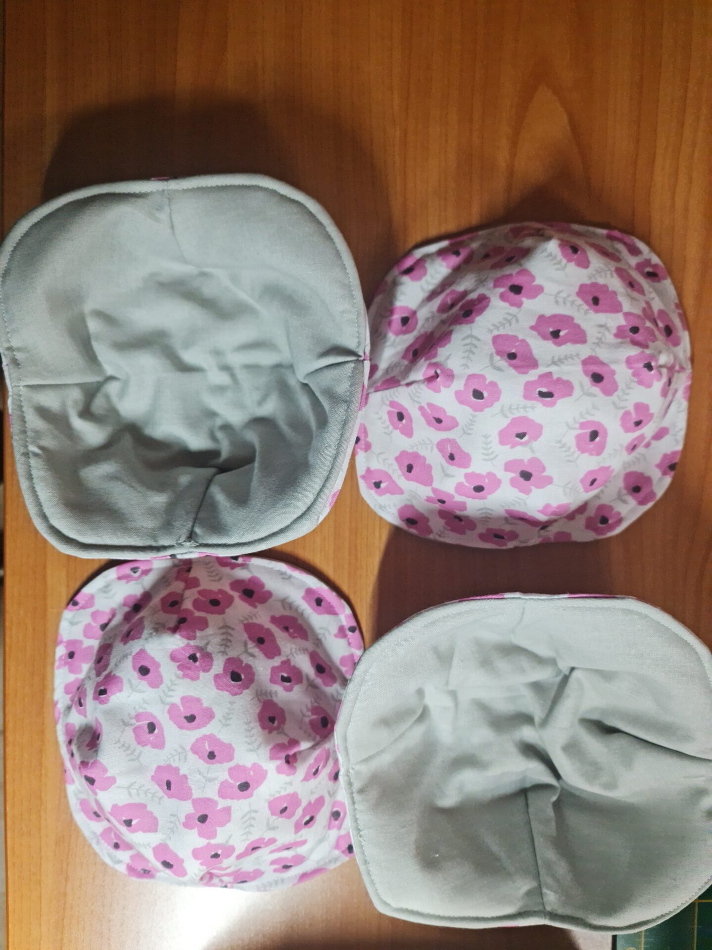 White and Pink Flower Pattern with Grey – Reversible Bowl Holders – Small